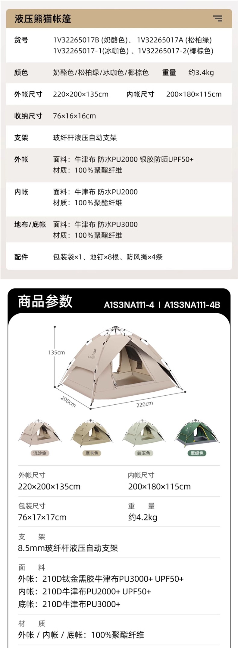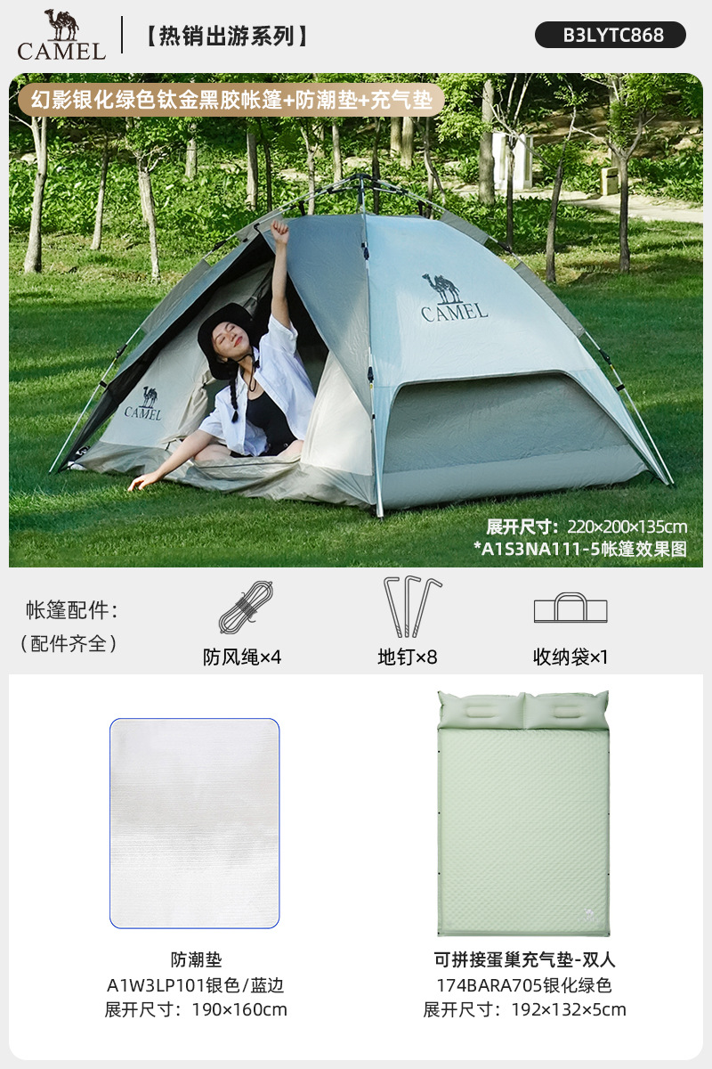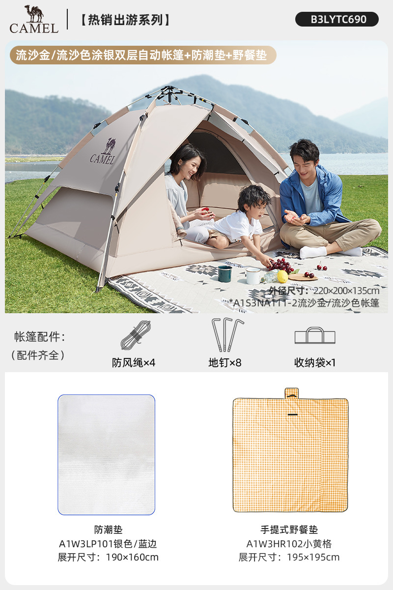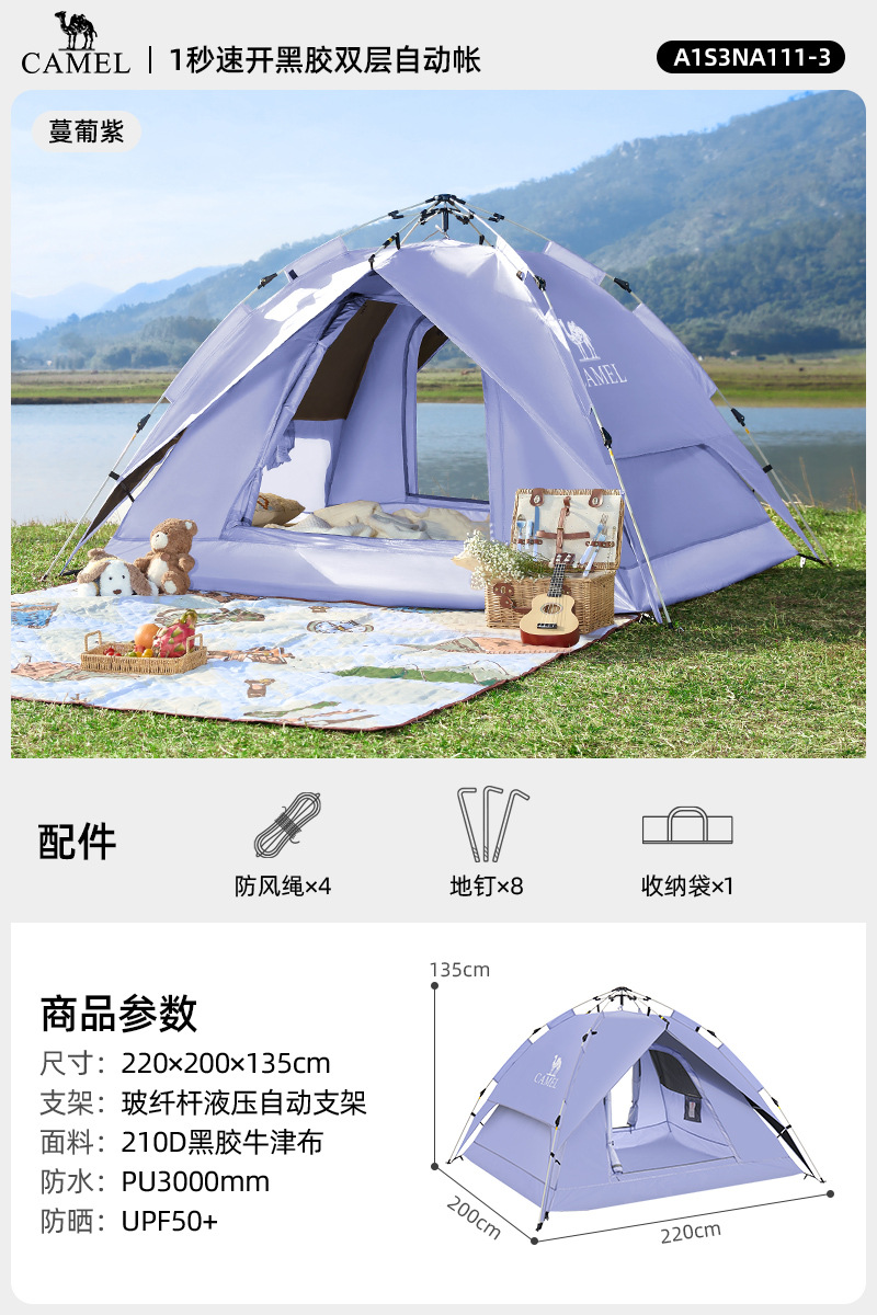 카멜 텐트 야외 접이식 편리한 캠핑 캠핑 하룻밤 자동 블랙 접착제 비치 실내 두꺼운 계절 마을스토어 가기