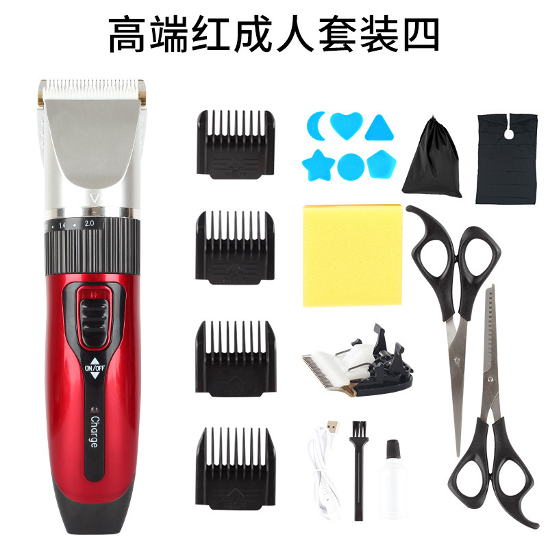 A5:理发器,4个定位梳,充电线,润滑油,清洁刷,带包装,围布,理发模型,梳子/海绵,束口收纳袋+不锈钢牙剪+不锈钢平剪+高脚原装刀头+电池.