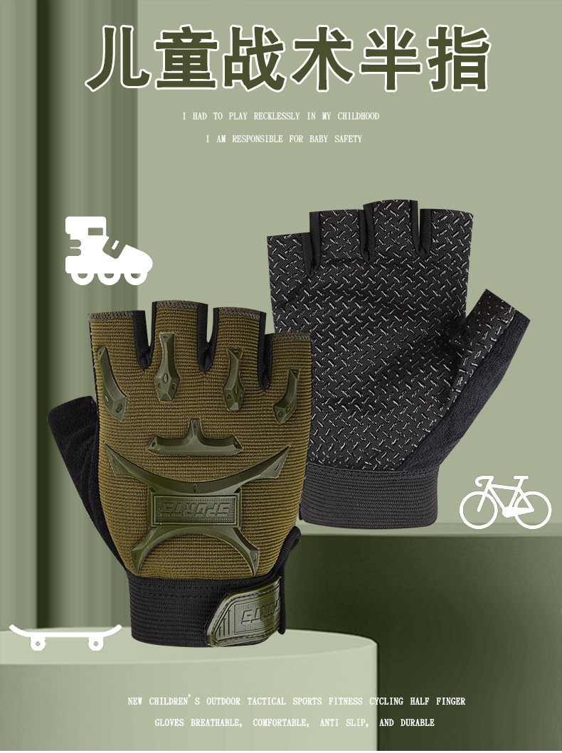 어린이 반 손가락 전술 위장 장갑 야외 스포츠 군사 팬 미끄럼 방지 학생 롤러 스케이트 밸런스 자동차 군사 훈련