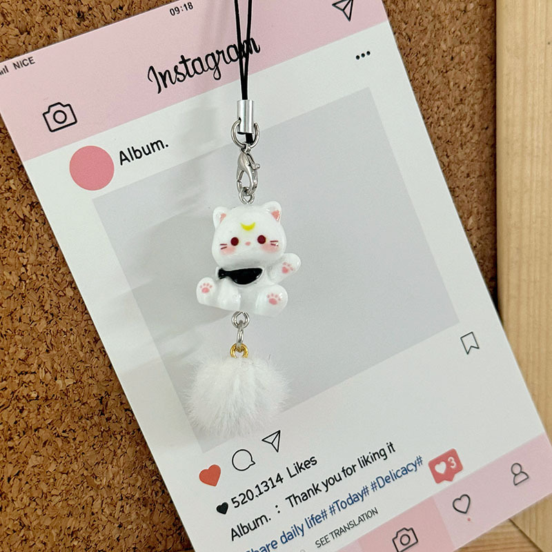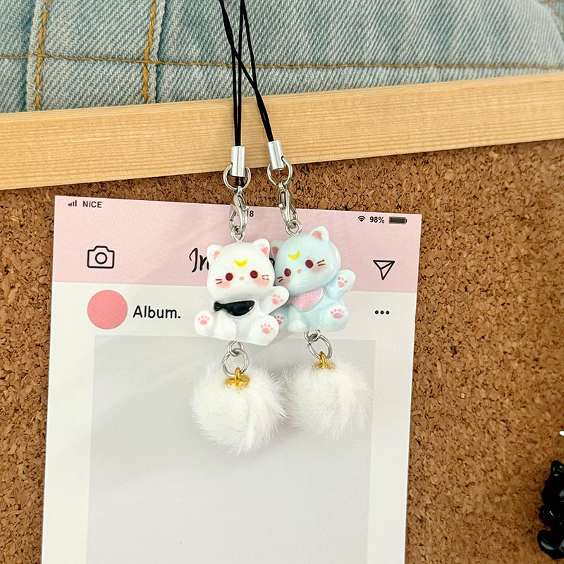 새로운 3 차원 만화 새끼 고양이 휴대 전화 체인 귀여운 수지 키 체인 학생 가방 펜던트 커플 여자 친구 선물