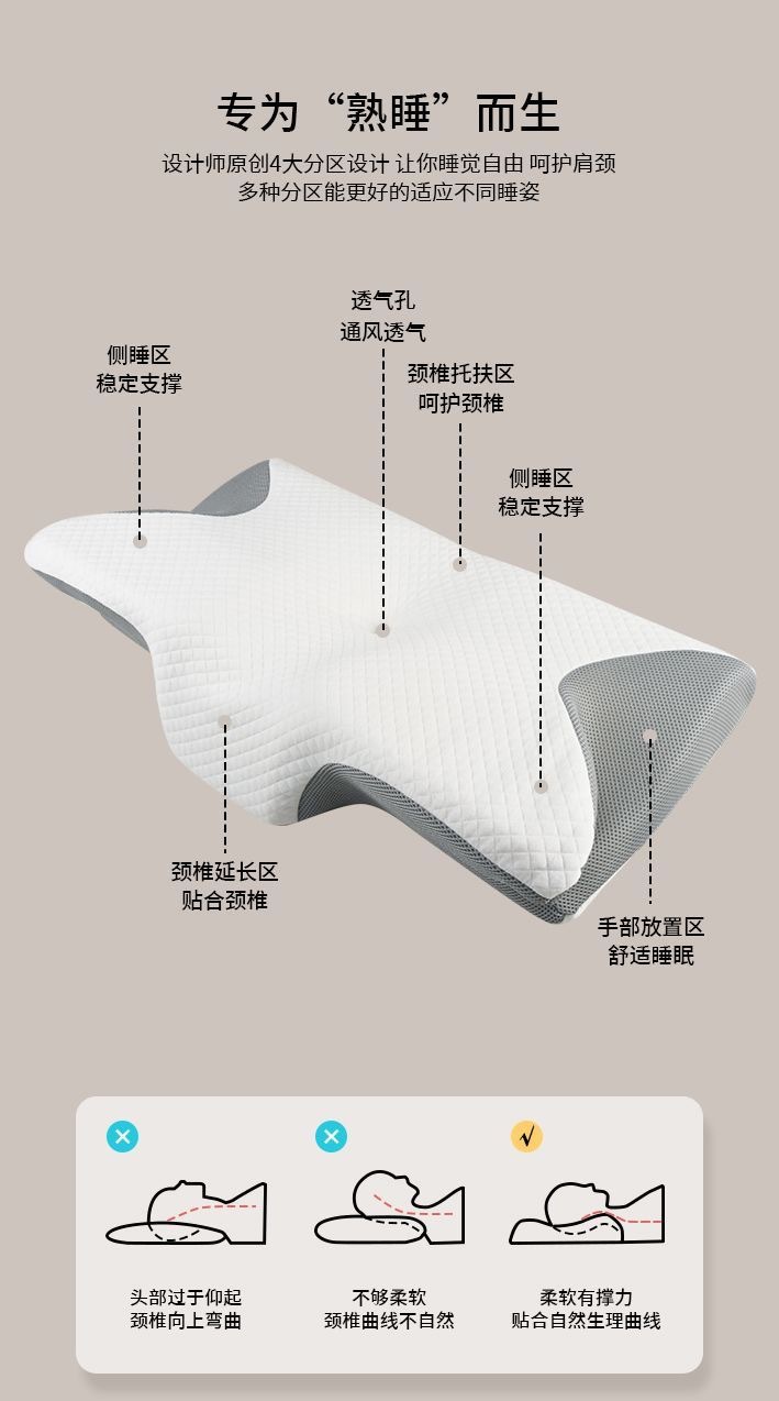 새로운 목 베개 메모리 면 나비 베개 홈 단일 수면 자궁 경부 슈퍼 부드러운 이동식 및 세척 가능한 원피스 헤어
