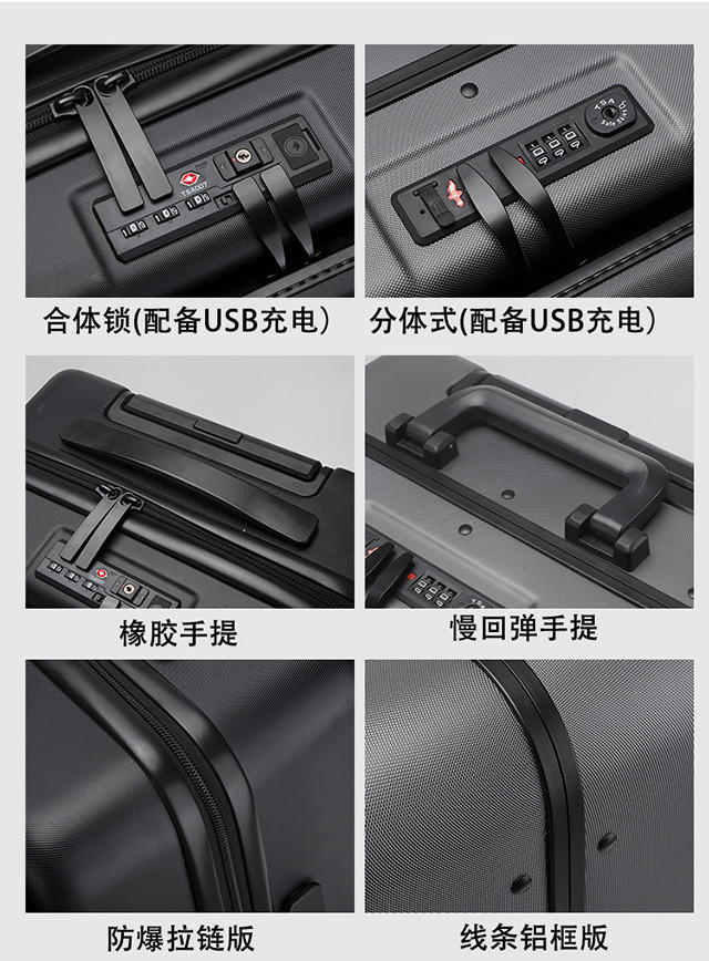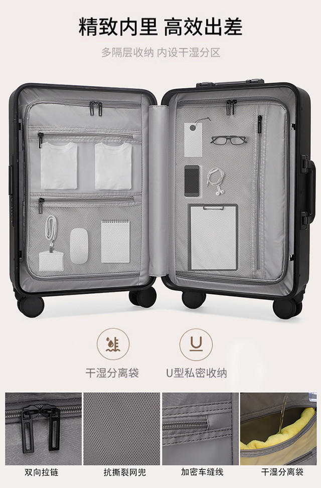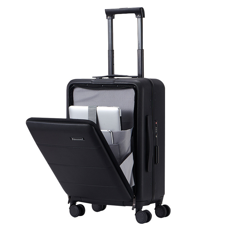 사이드 오프닝 비즈니스 하이 기어 수하물 남성용 소형 탑승 상자 알루미늄 프레임 가방 여성 컴퓨터 충전 당김