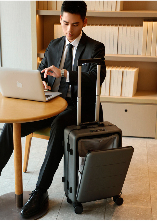 사이드 오프닝 비즈니스 하이 기어 수하물 남성용 소형 탑승 상자 알루미늄 프레임 가방 여성 컴퓨터 충전 당김스토어 가기