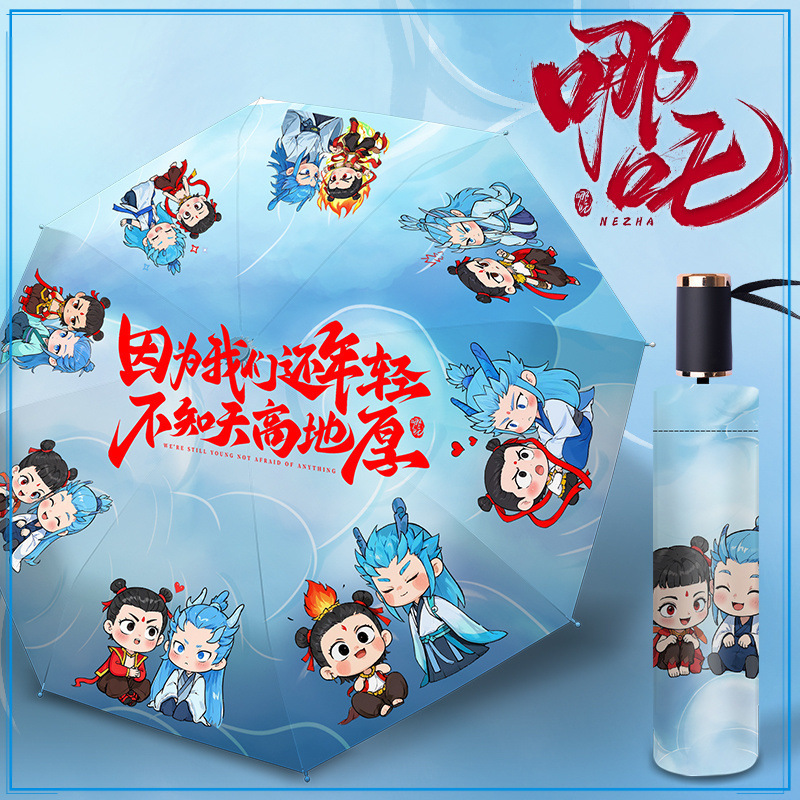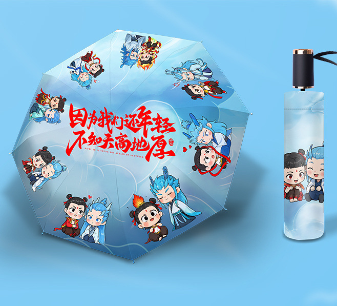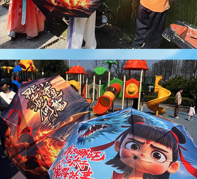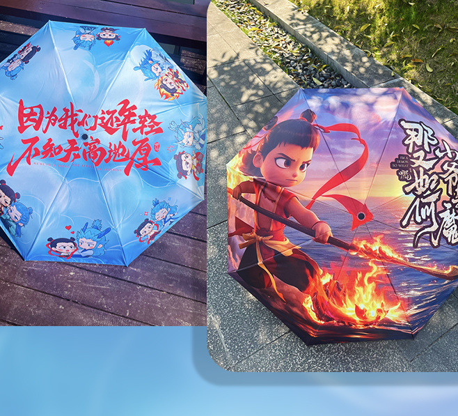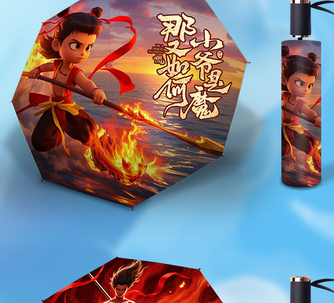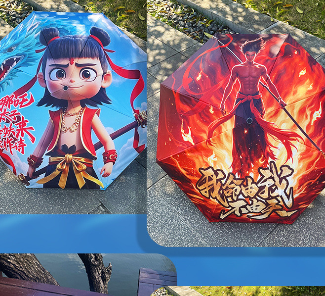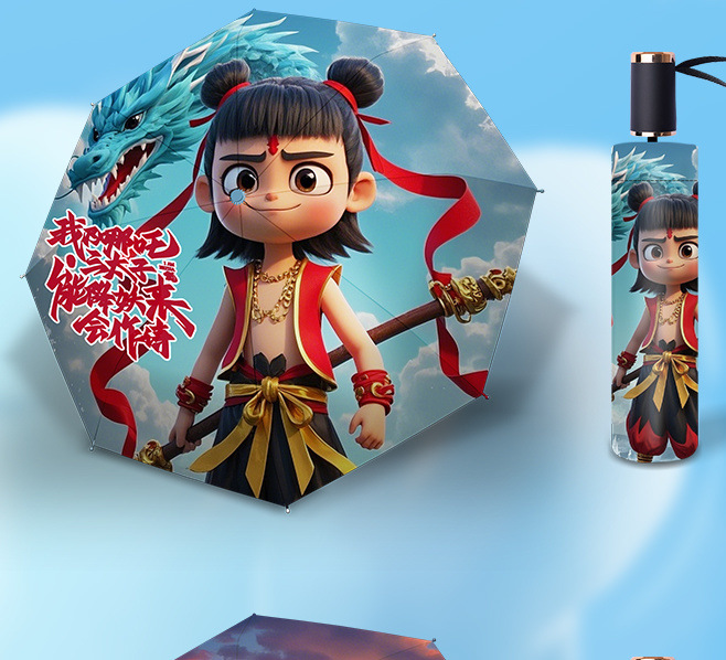 爆款哪吒儿童雨伞加固便携新款晴雨两用防晒学生晴雨两用伞卡通伞