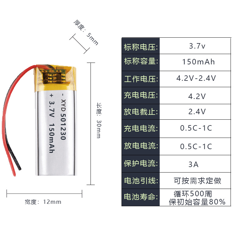 501230 폴리머 리튬 배터리 150mAh 넥 이어폰 러셔 진드기 리무버 마우스 녹음 펜 3.7V스토어 가기