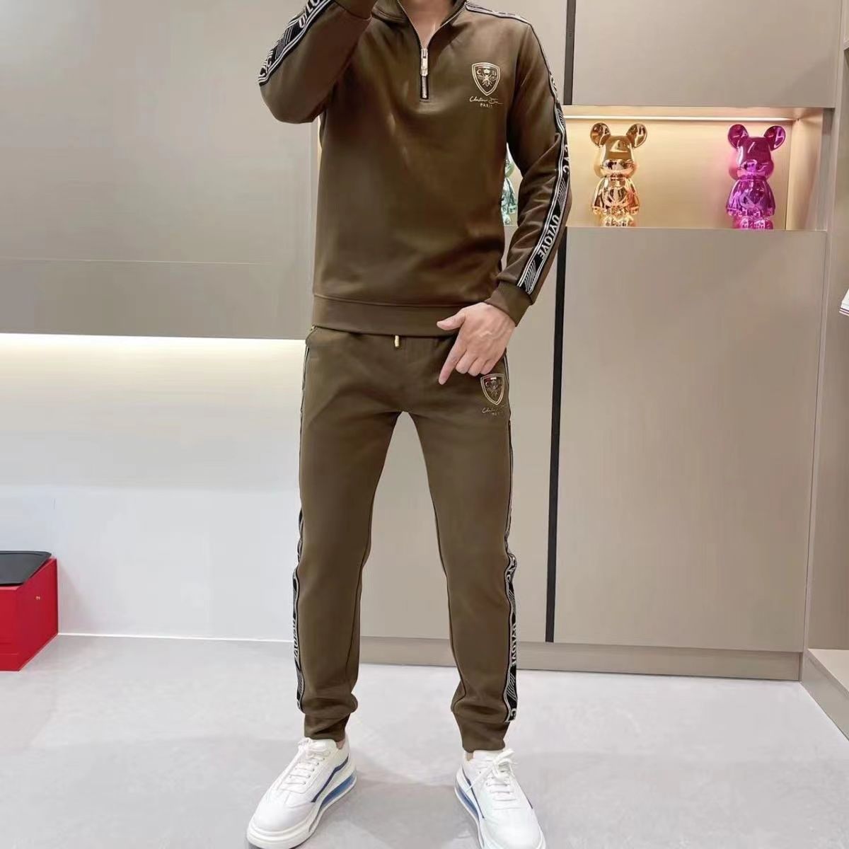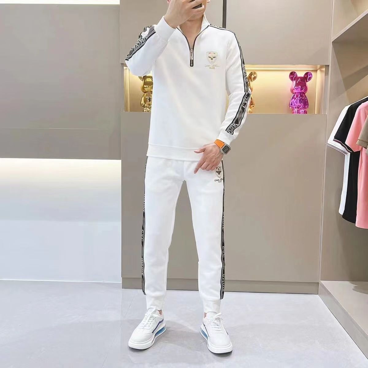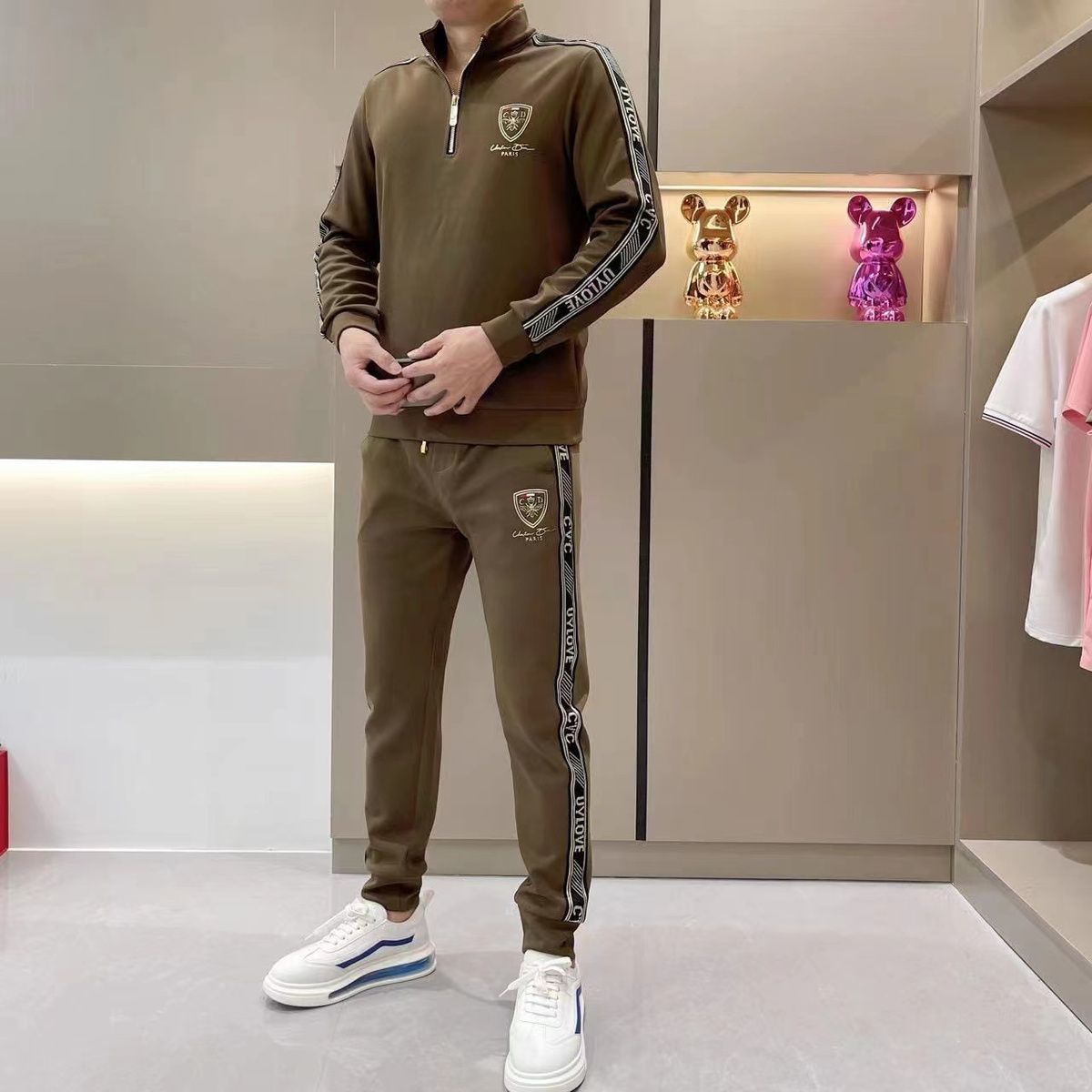 새로운 남자 대비 캐주얼 스포츠 세트 남자 유럽 역 스트레치 블랙 스탠드 칼라 투피스 남자 재킷 바지스토어 가기