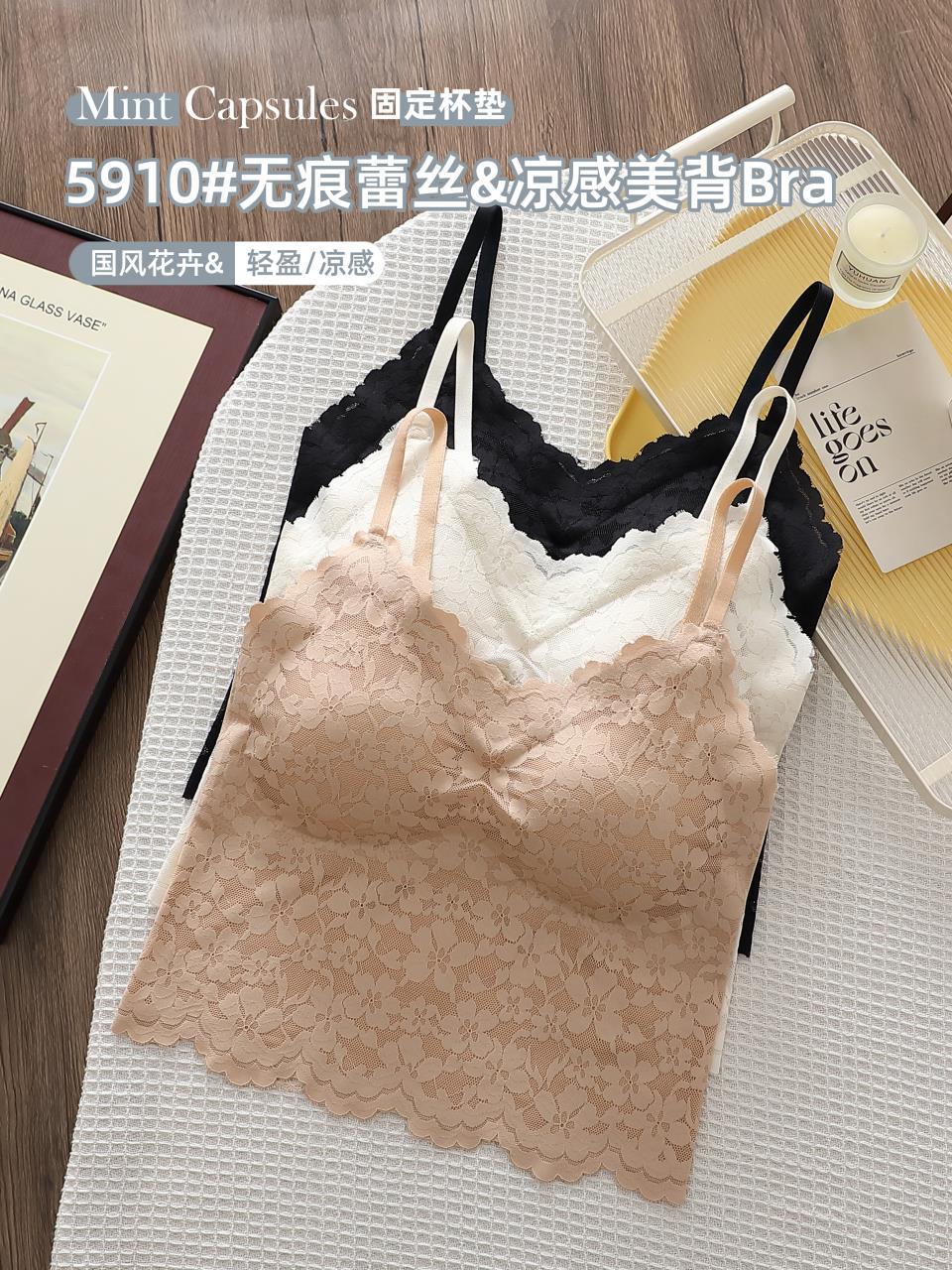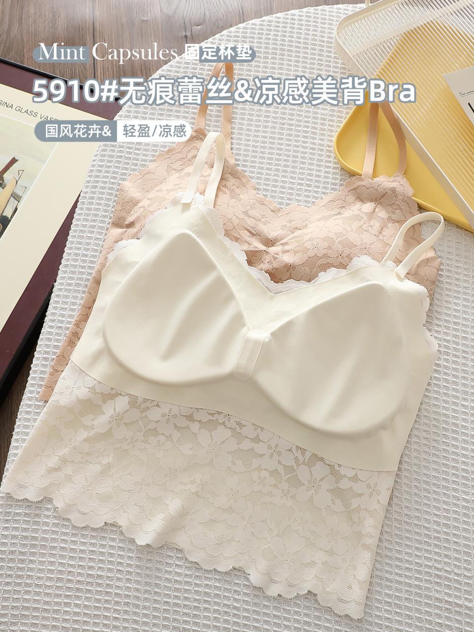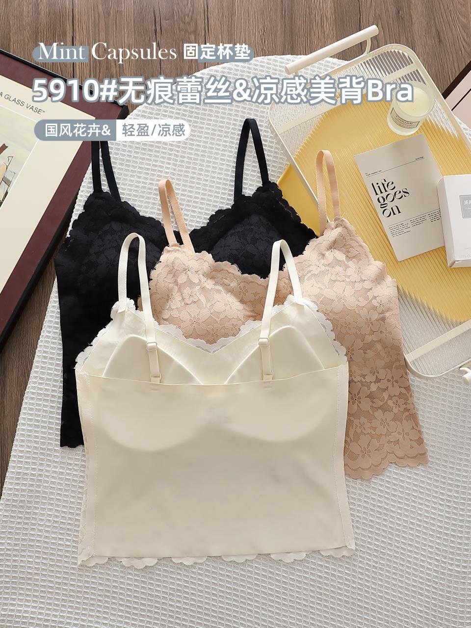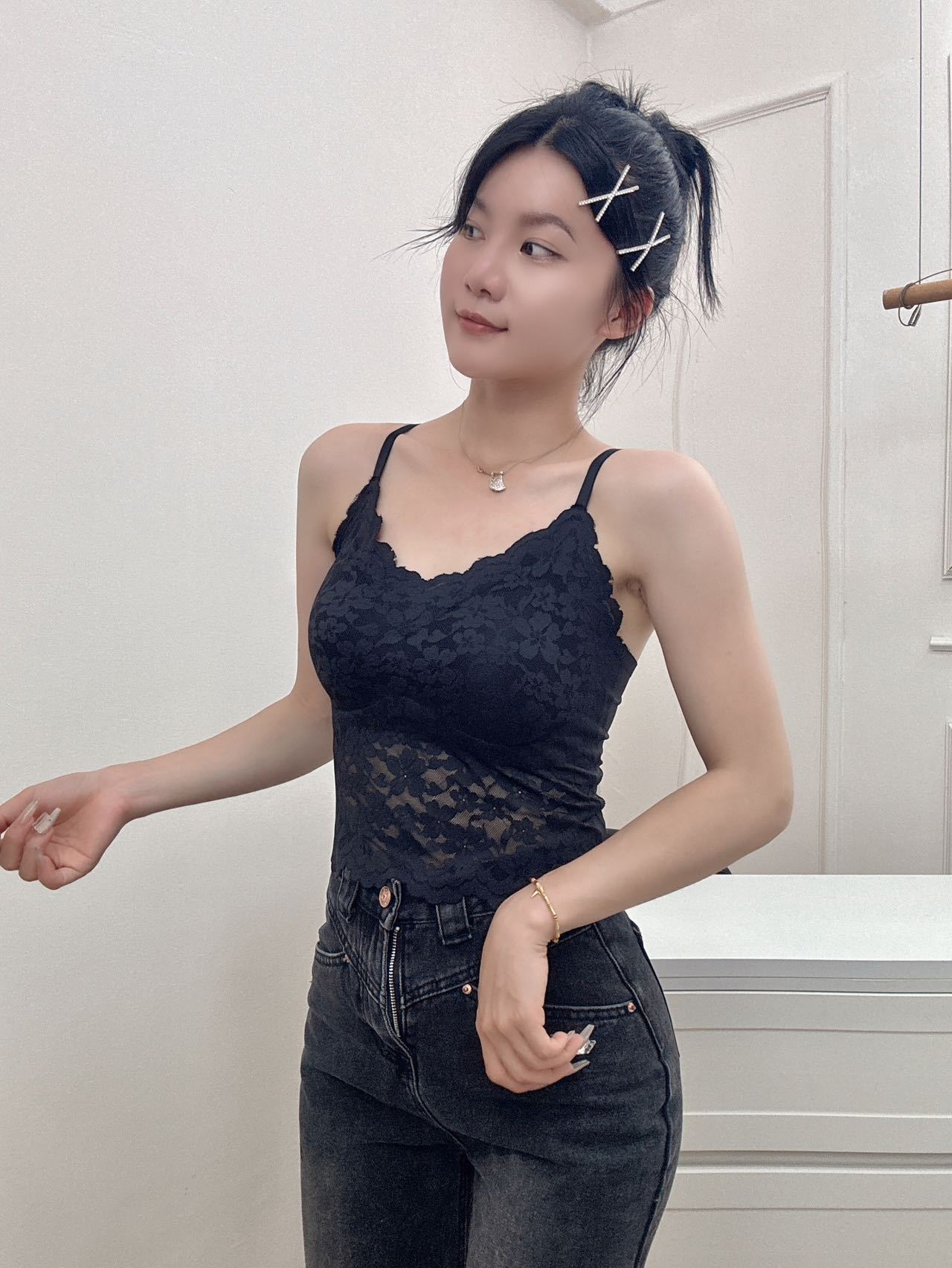 여름 새로운 아이스 실크 아름다운 백 카미솔 조끼 원피스 트랙리스 조끼 레이스 카미솔-가슴 패드 여성 아우터웨어