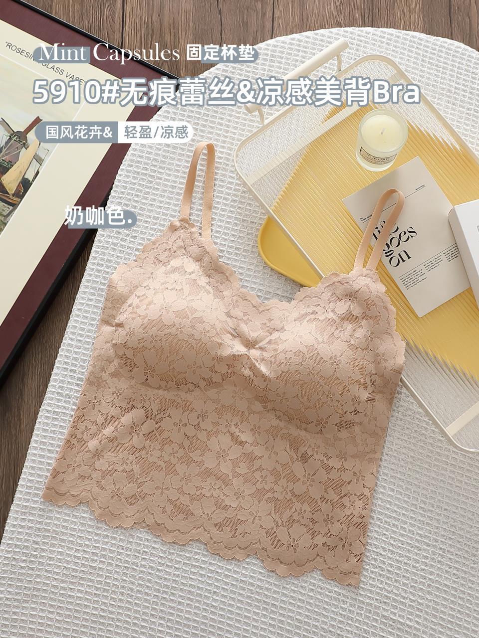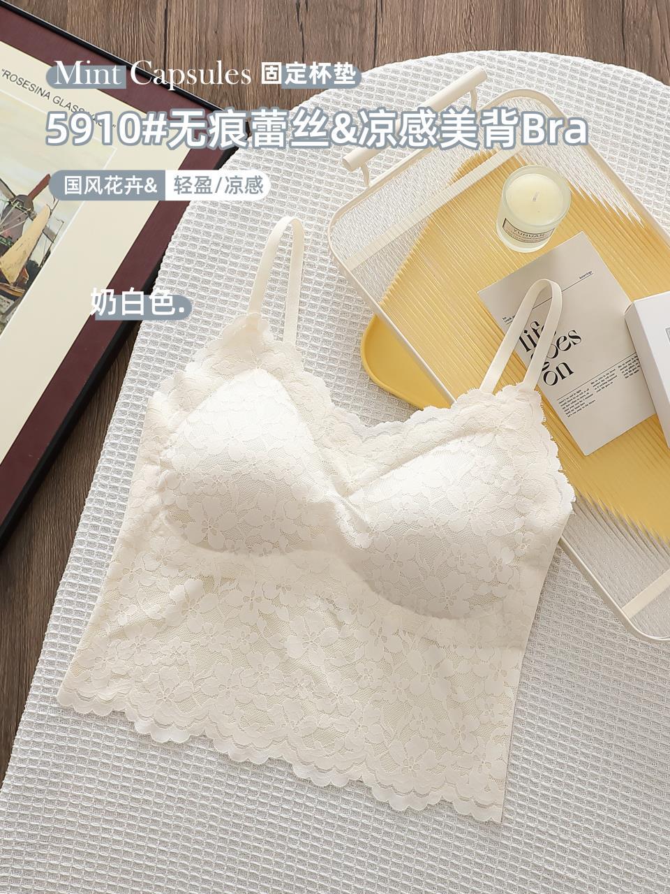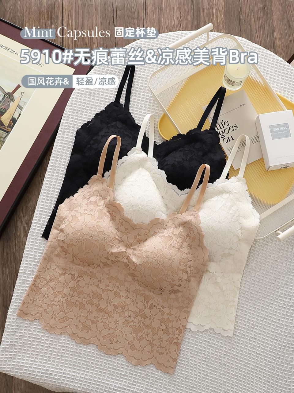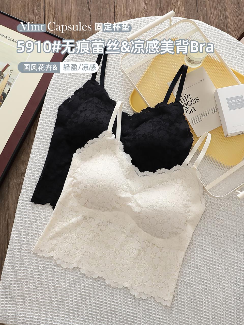 여름 새로운 아이스 실크 아름다운 백 카미솔 조끼 원피스 트랙리스 조끼 레이스 카미솔-가슴 패드 여성 아우터웨어