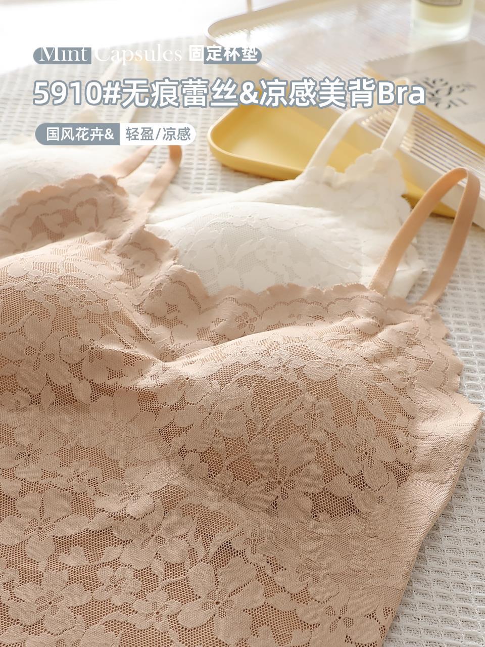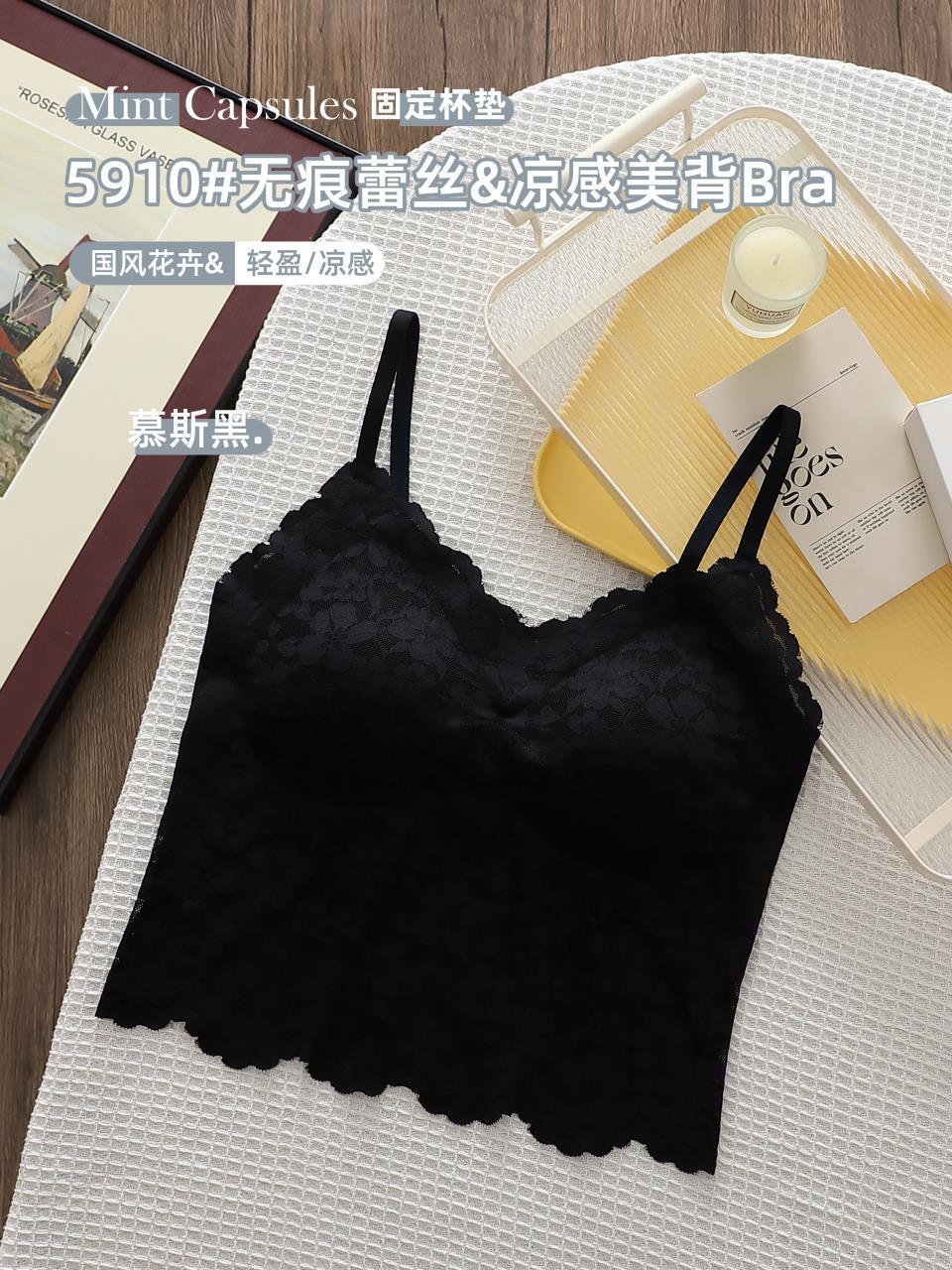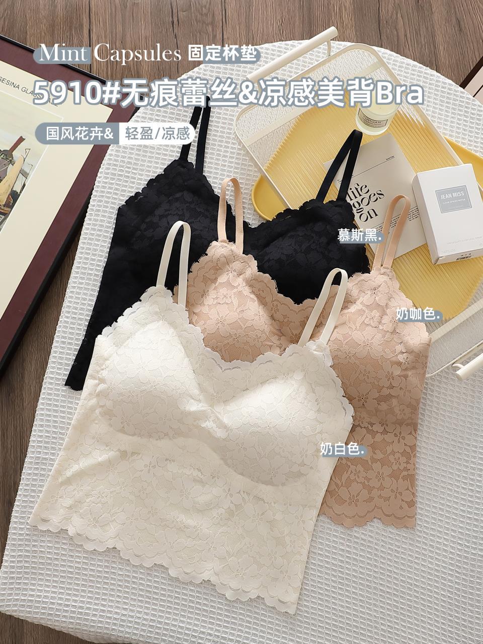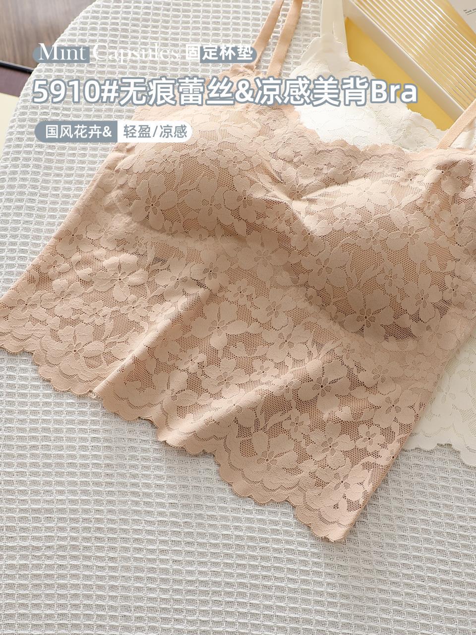 여름 새로운 아이스 실크 아름다운 백 카미솔 조끼 원피스 트랙리스 조끼 레이스 카미솔-가슴 패드 여성 아우터웨어