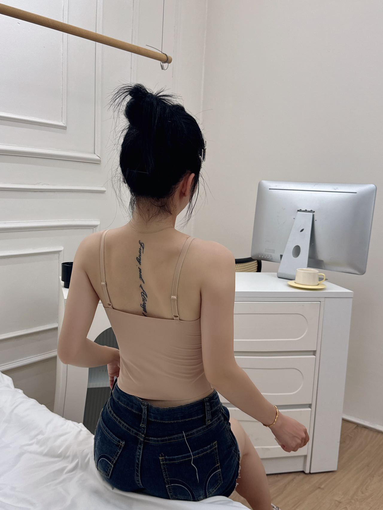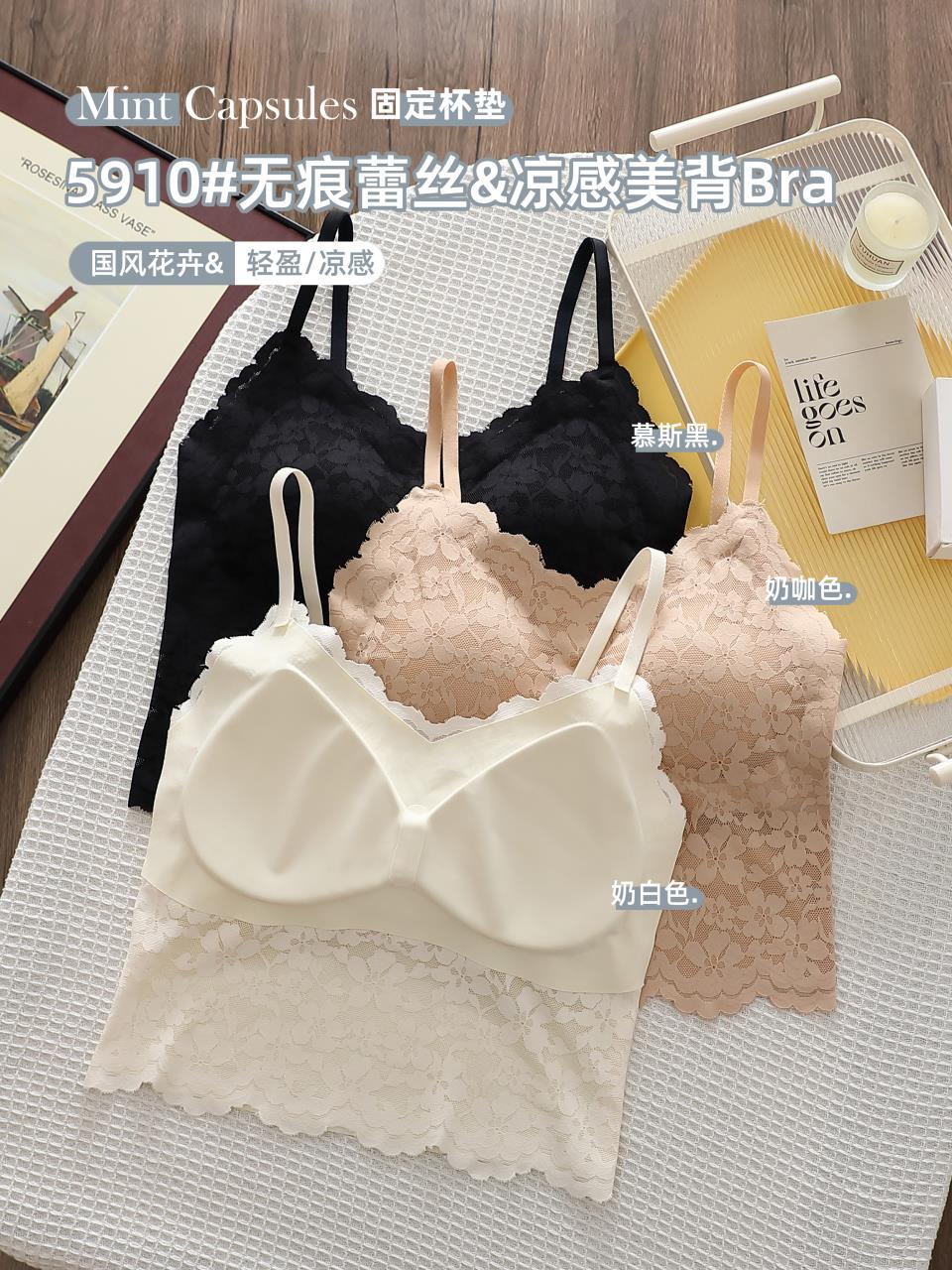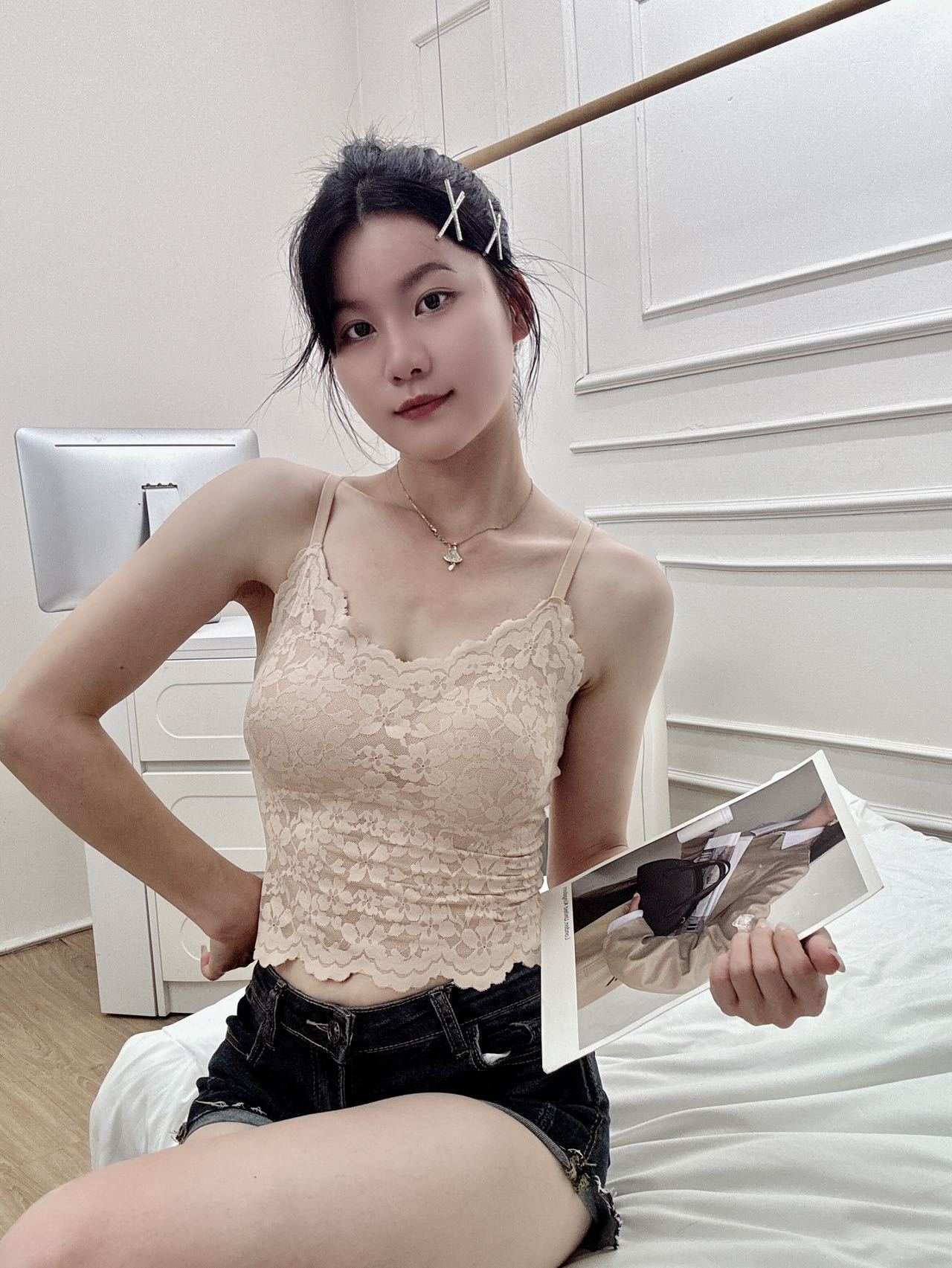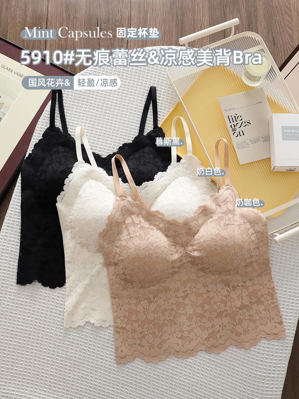 여름 새로운 아이스 실크 아름다운 백 카미솔 조끼 원피스 트랙리스 조끼 레이스 카미솔-가슴 패드 여성 아우터웨어