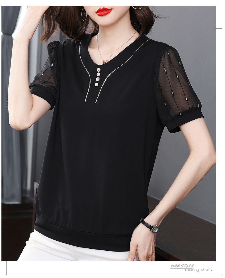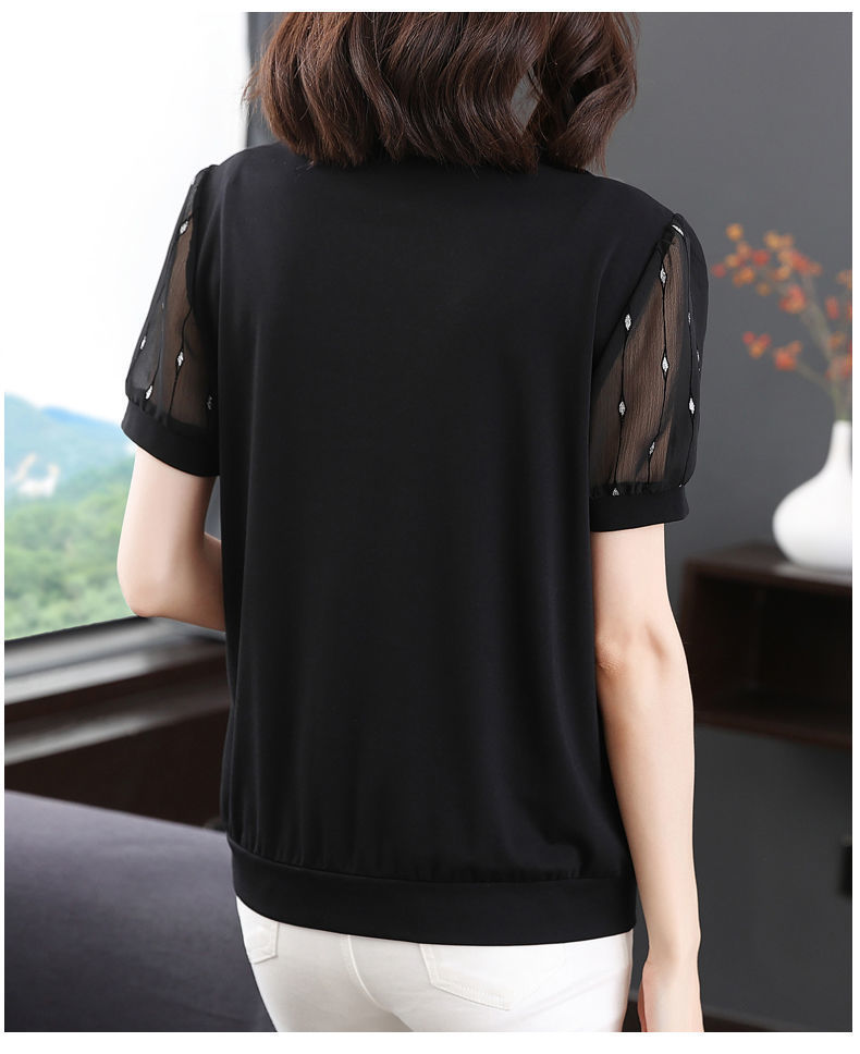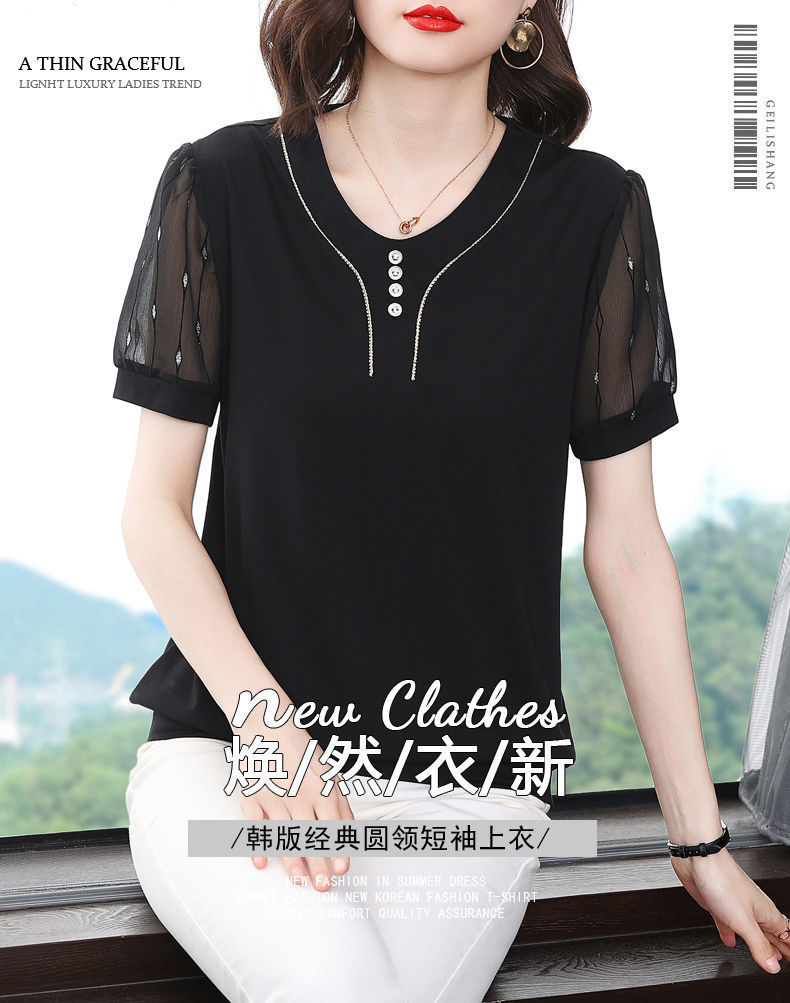 엄마 반팔 셔츠 여자의 느슨한 2025 여름 새로운 중년 및 노인 플러스 사이즈 여성 유행 우아한 배 덮개 탑
