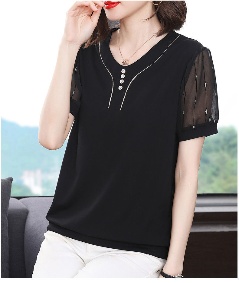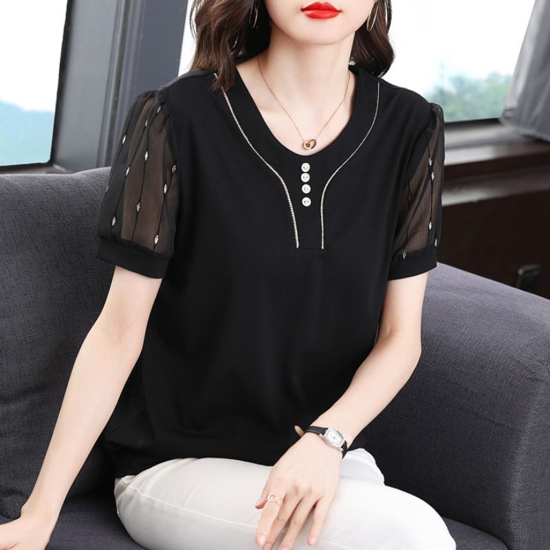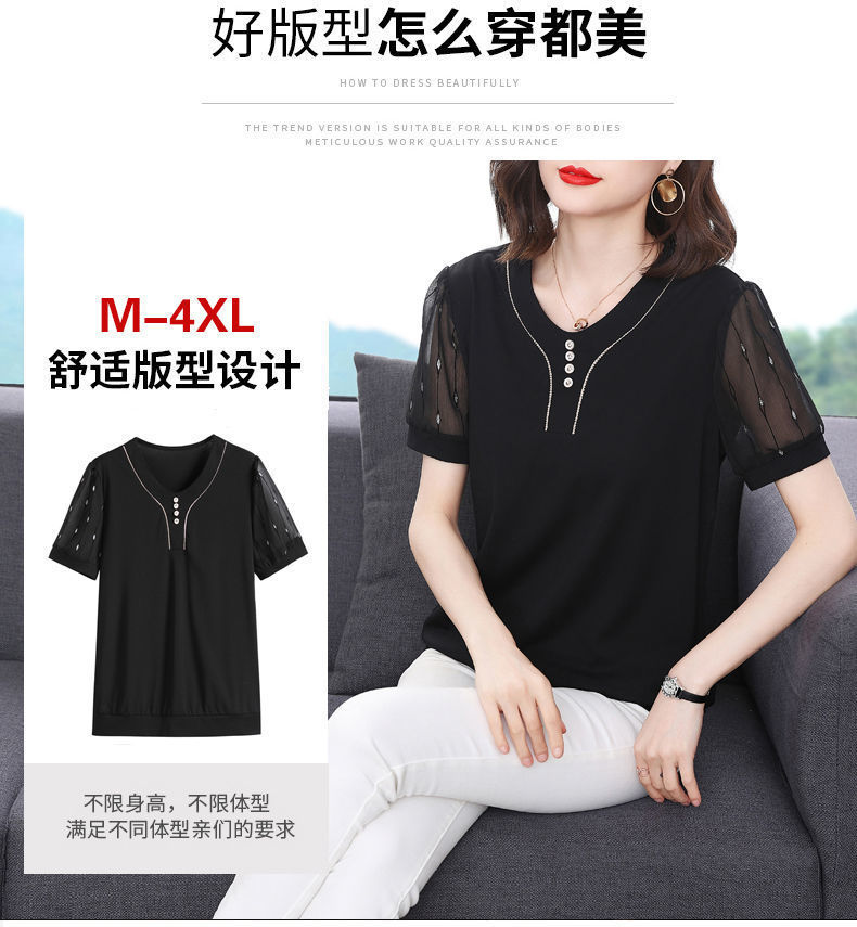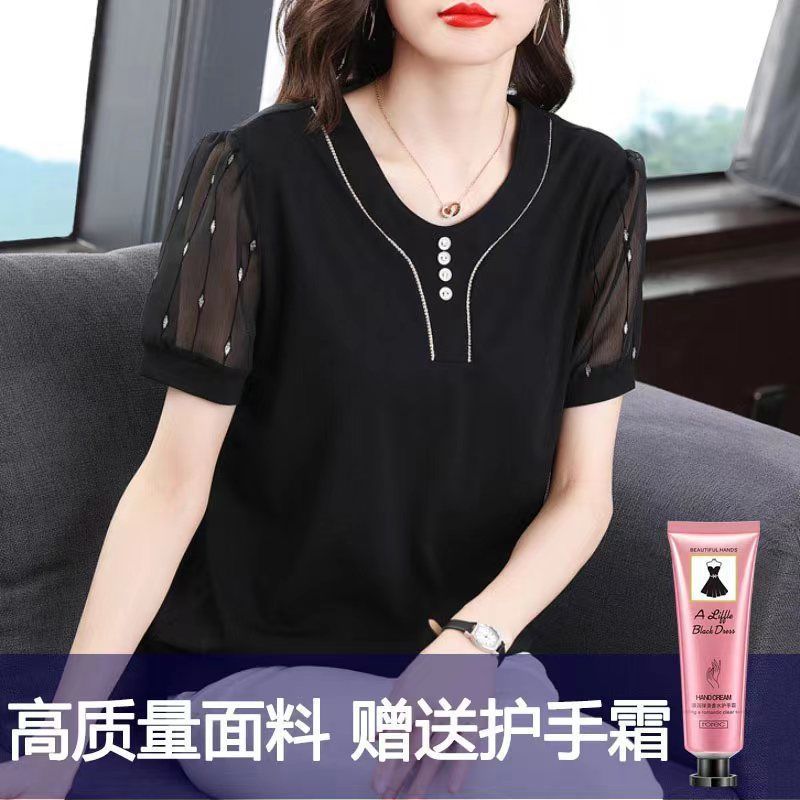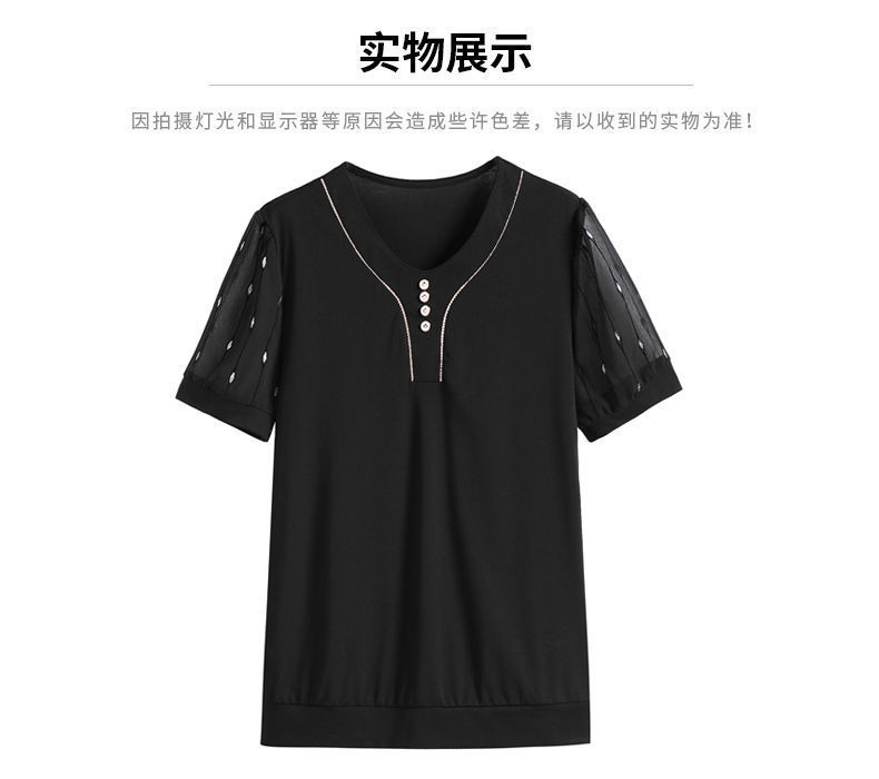 엄마 반팔 셔츠 여자의 느슨한 2025 여름 새로운 중년 및 노인 플러스 사이즈 여성 유행 우아한 배 덮개 탑스토어 가기