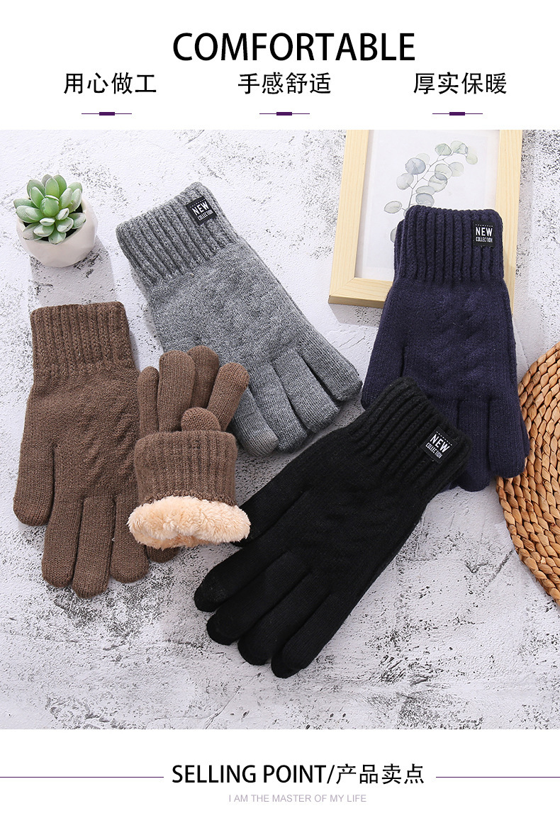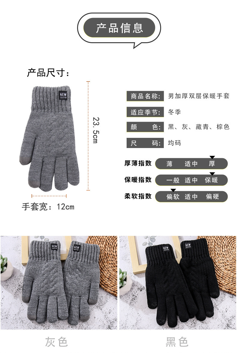 새로운 더블 두꺼운 기모 겨울 터치 스크린 장갑 감기 방지 따뜻한 봉제 남성 니트 장갑스토어 가기