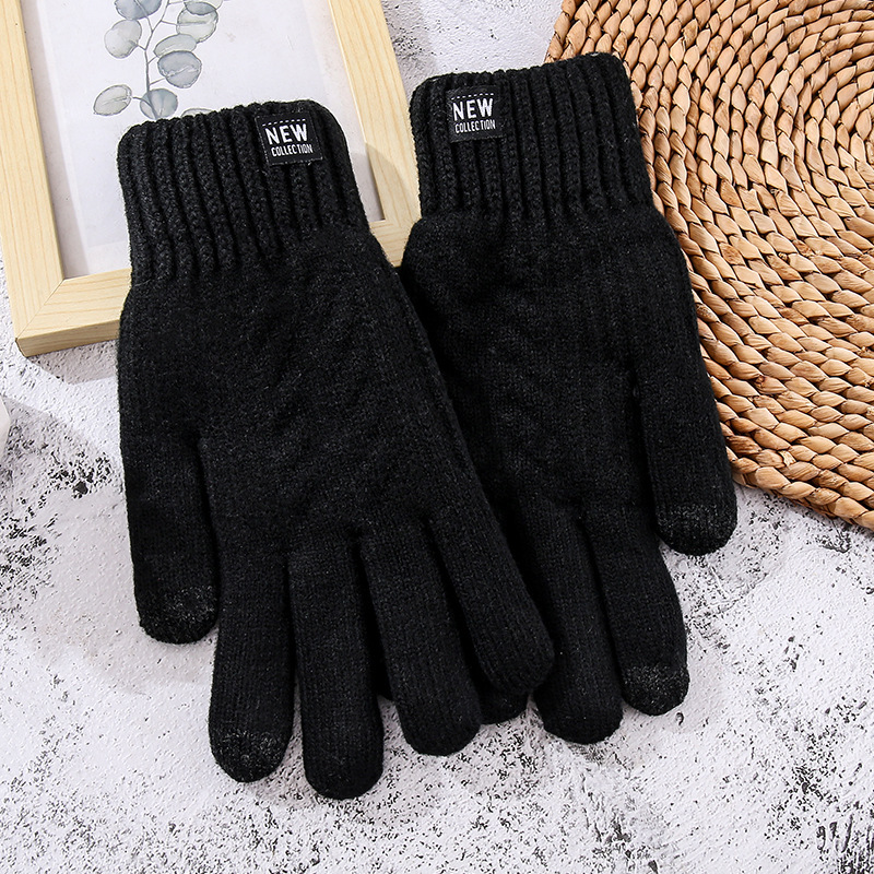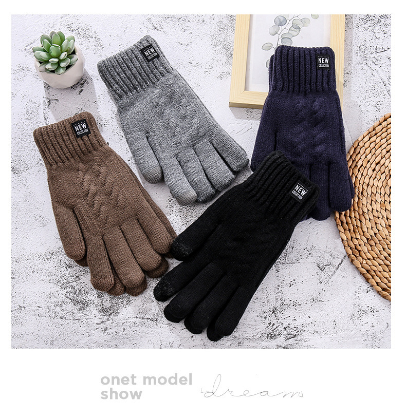 새로운 더블 두꺼운 기모 겨울 터치 스크린 장갑 감기 방지 따뜻한 봉제 남성 니트 장갑