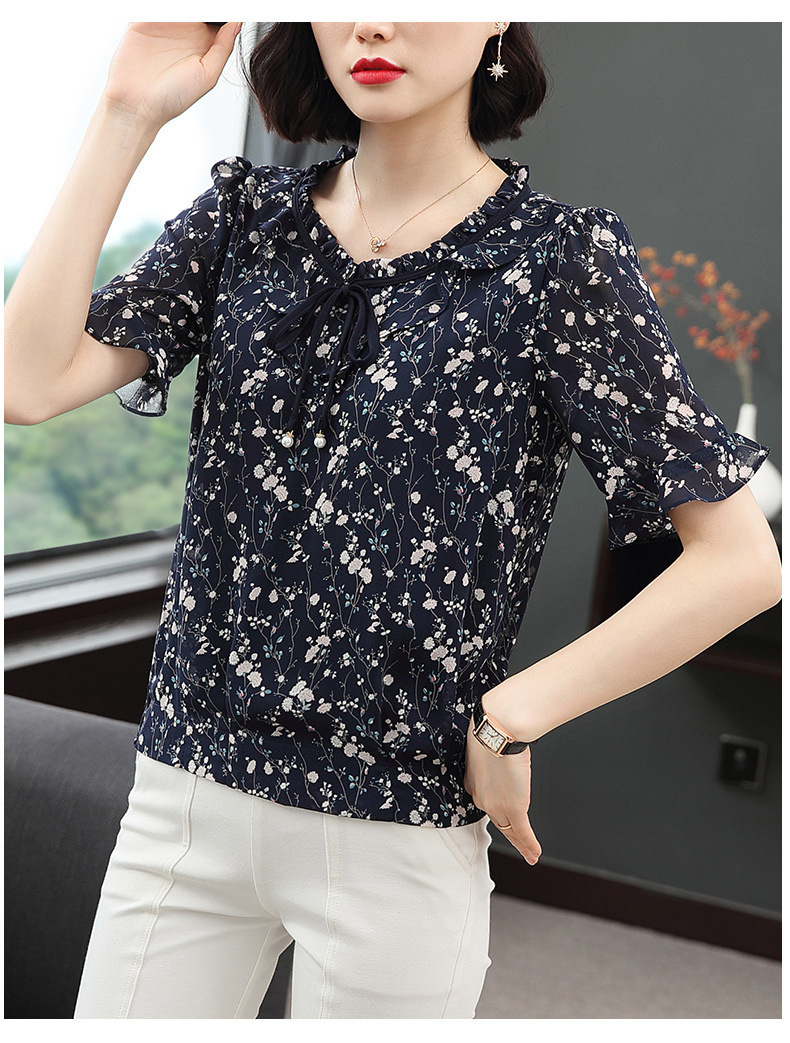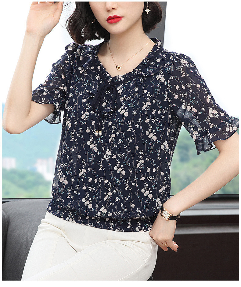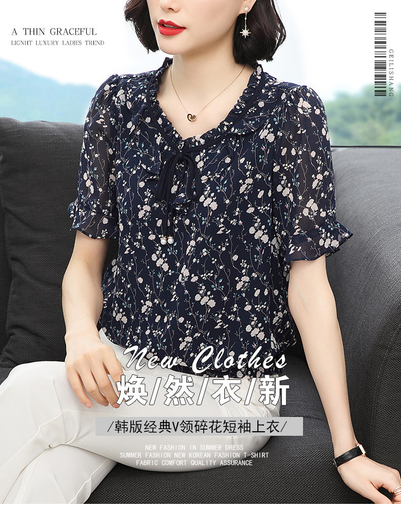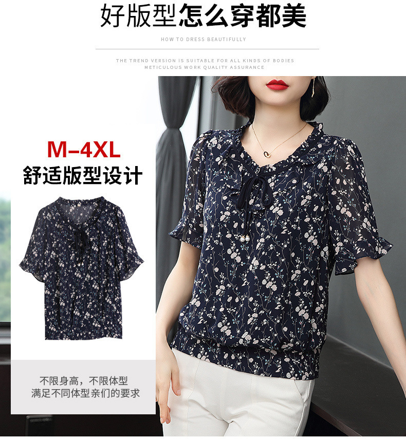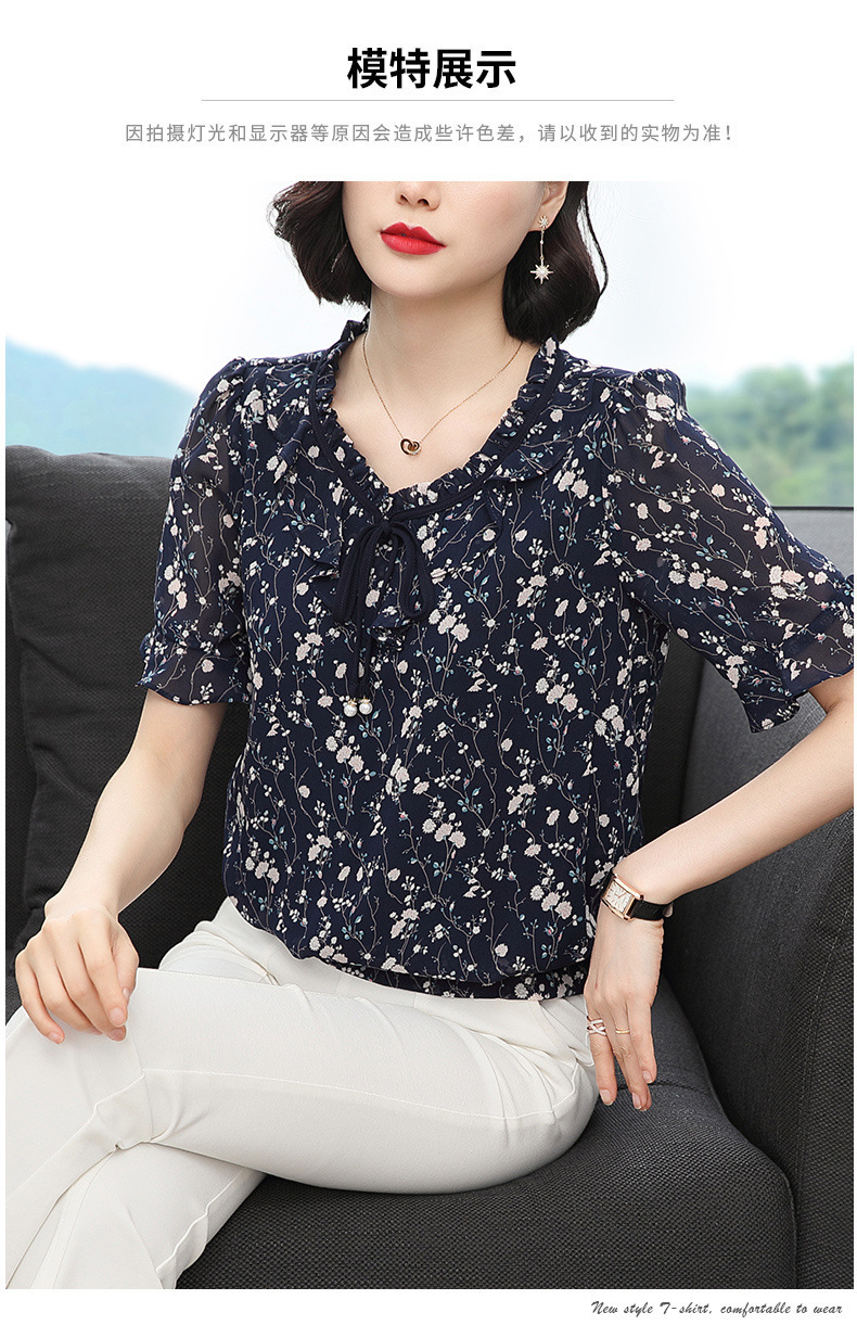 시폰 셔츠 여자 꽃 반소매 2024 여름 새 스타일 올매치 느슨한 중년 어머니 배 커버스토어 가기