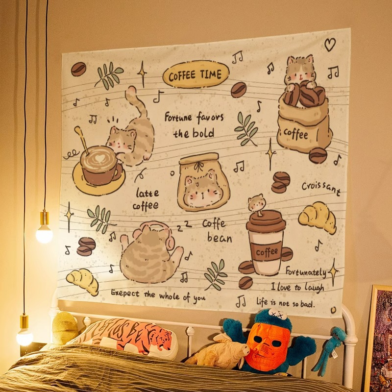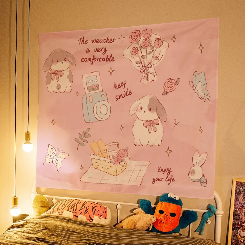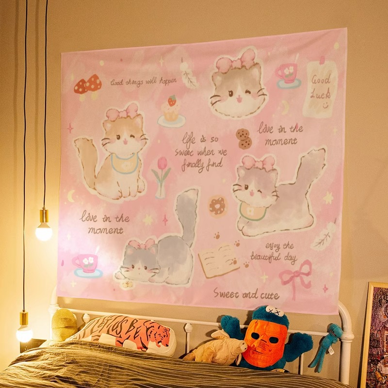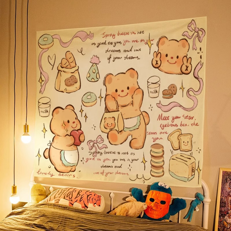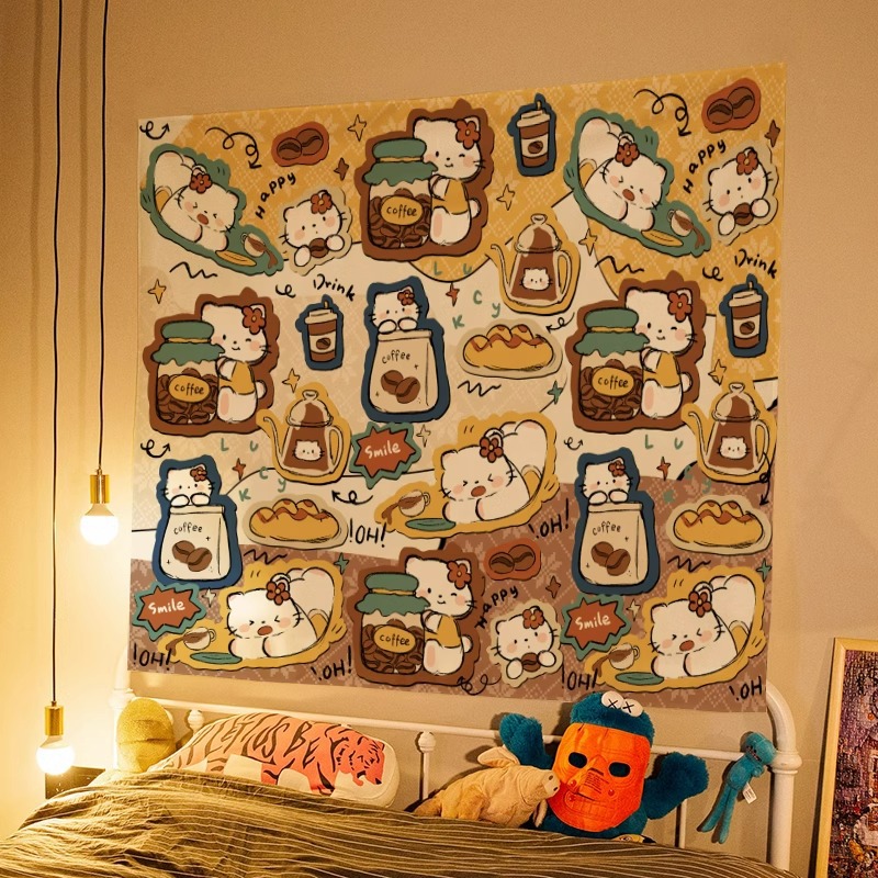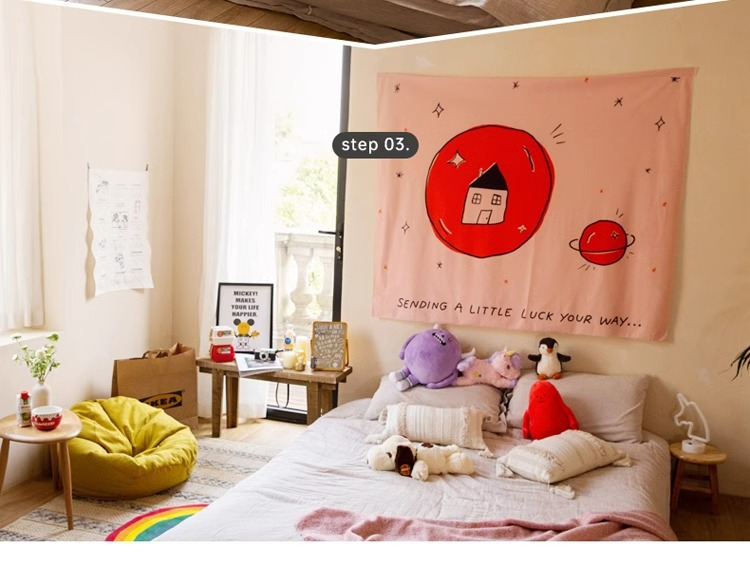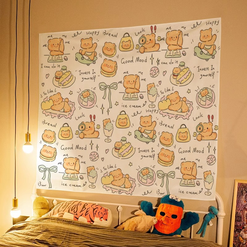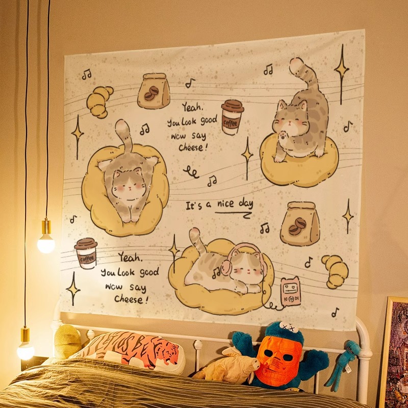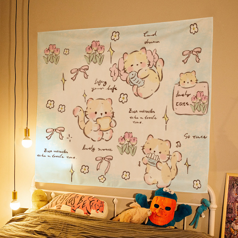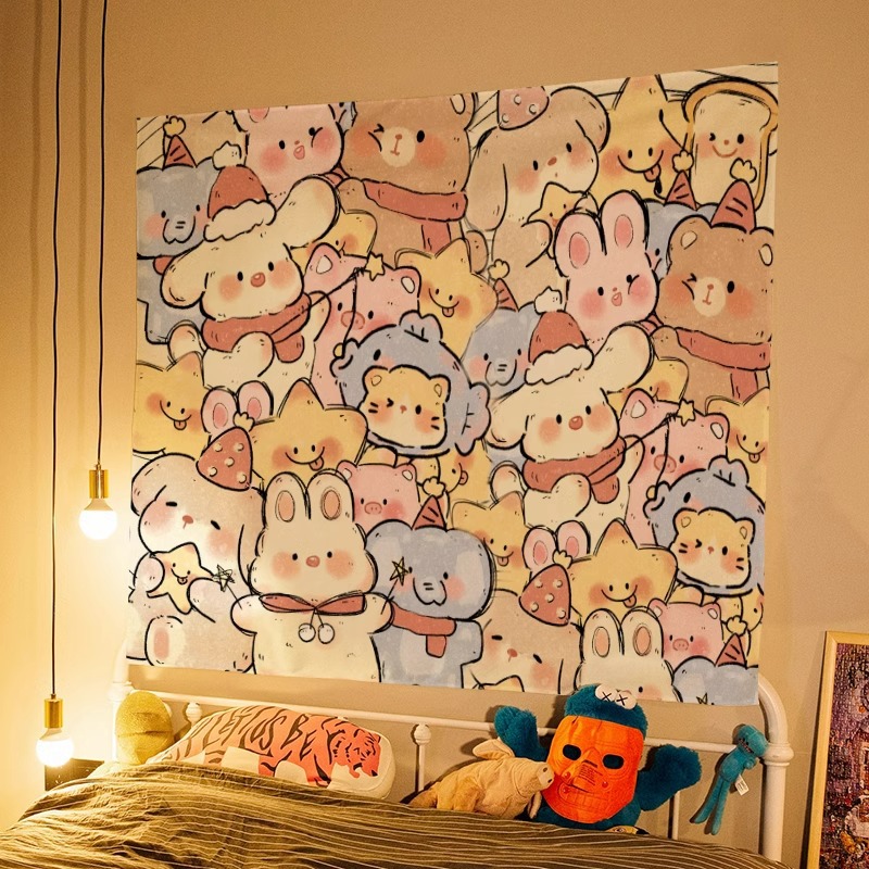 귀여운 만화 배경 천 기숙사 컴퓨터 책상 매달려 헝겊 만화 벽 헝겊 방 장식 그림 침실 태피스스토어 가기