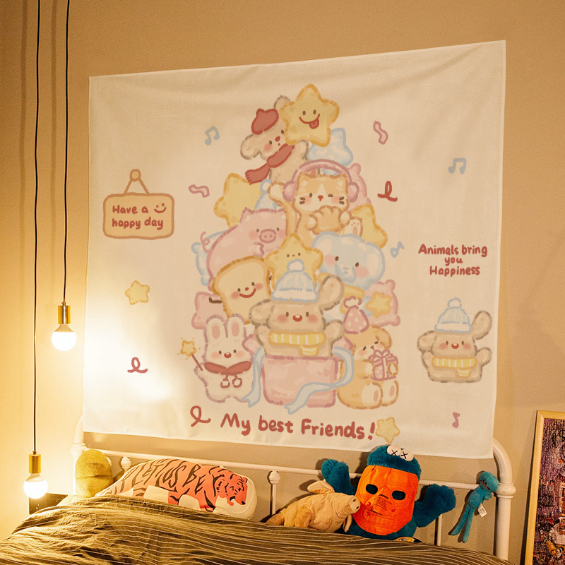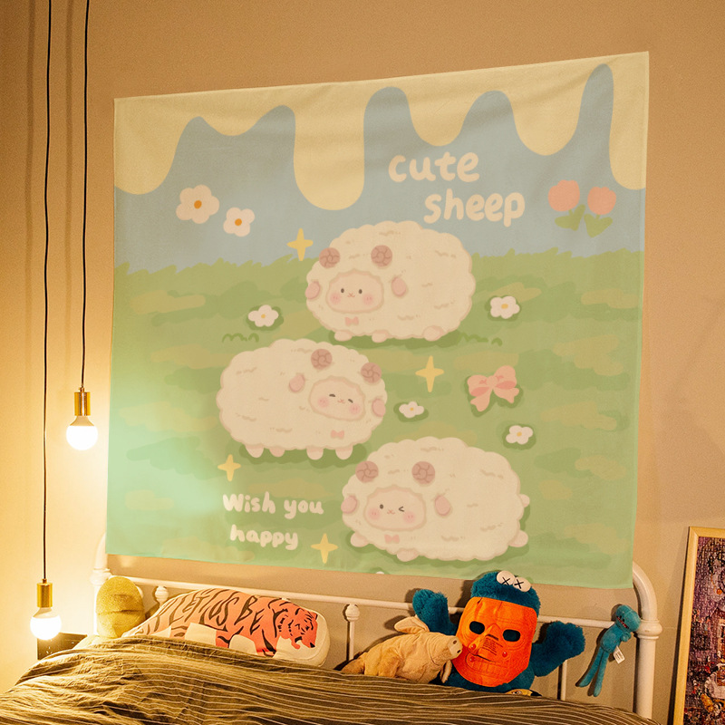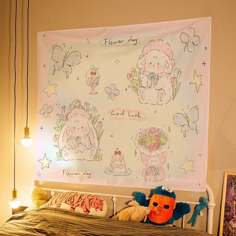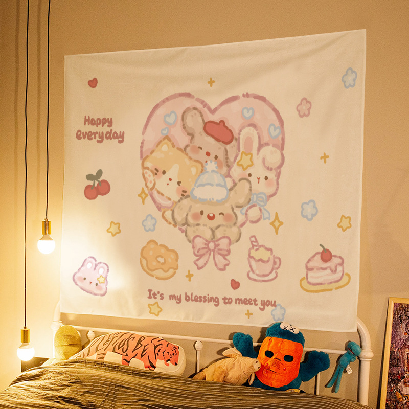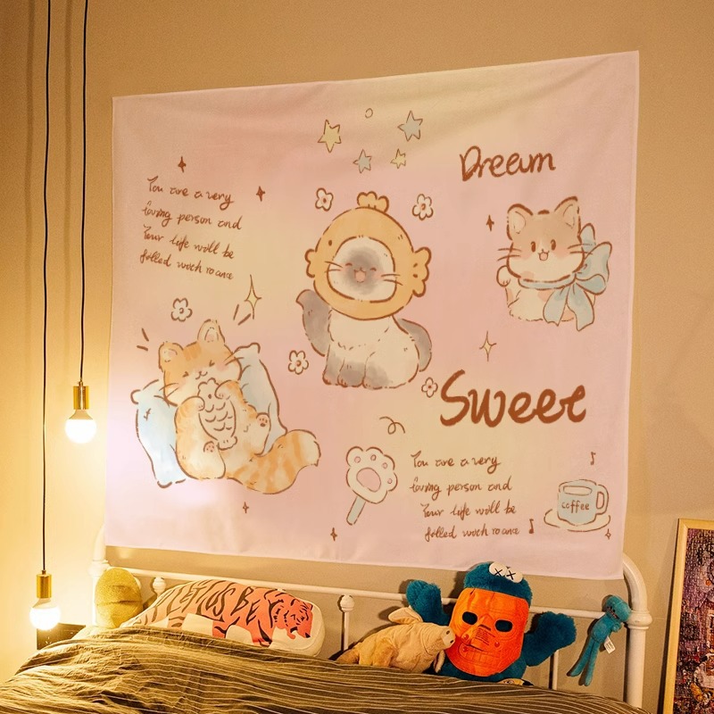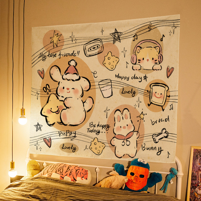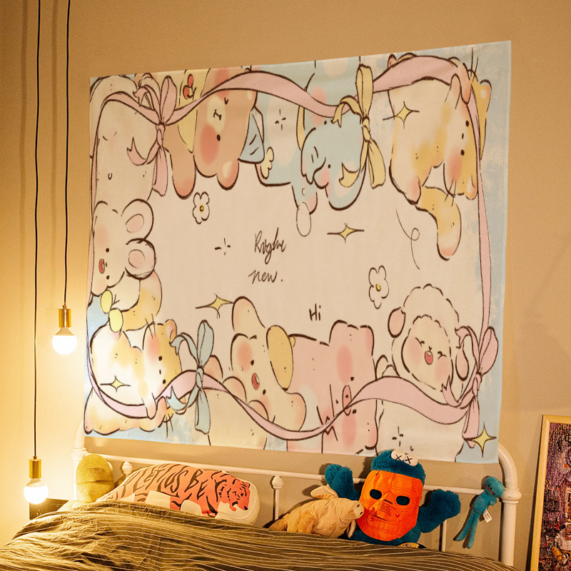 귀여운 만화 배경 천 기숙사 컴퓨터 책상 매달려 헝겊 만화 벽 헝겊 방 장식 그림 침실 태피스