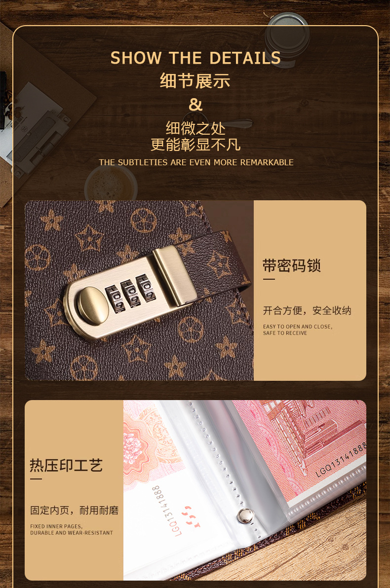 2025 새로운 암호 잠금 부기 책 A6 암호 잠금 예금 보관 책 대용량 내부 페이지 현금 예금 책