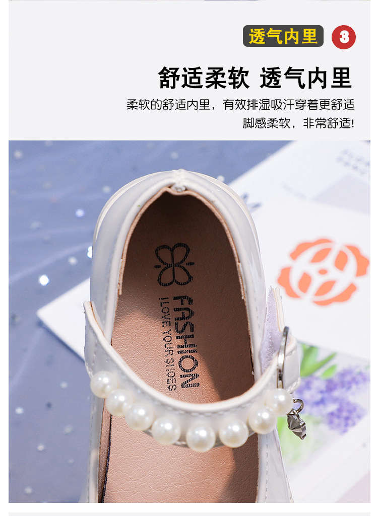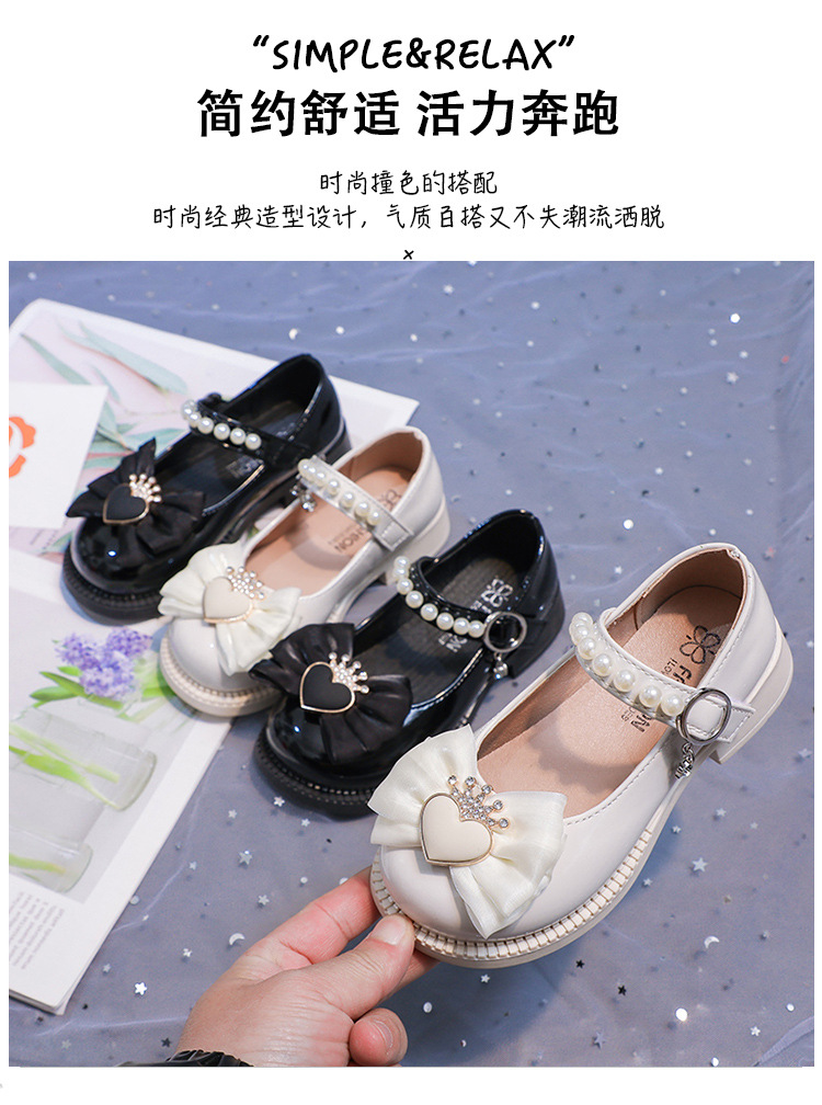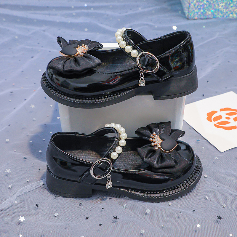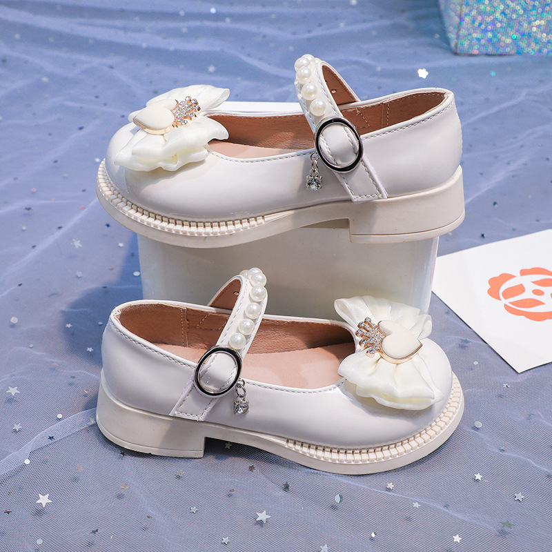 소녀 가죽 신발 봄과 가을 새로운 어린이 공주 미끄럼 방지 진주 활 액세서리 샤넬 스타일 가죽 신발 편안하고 트렌디