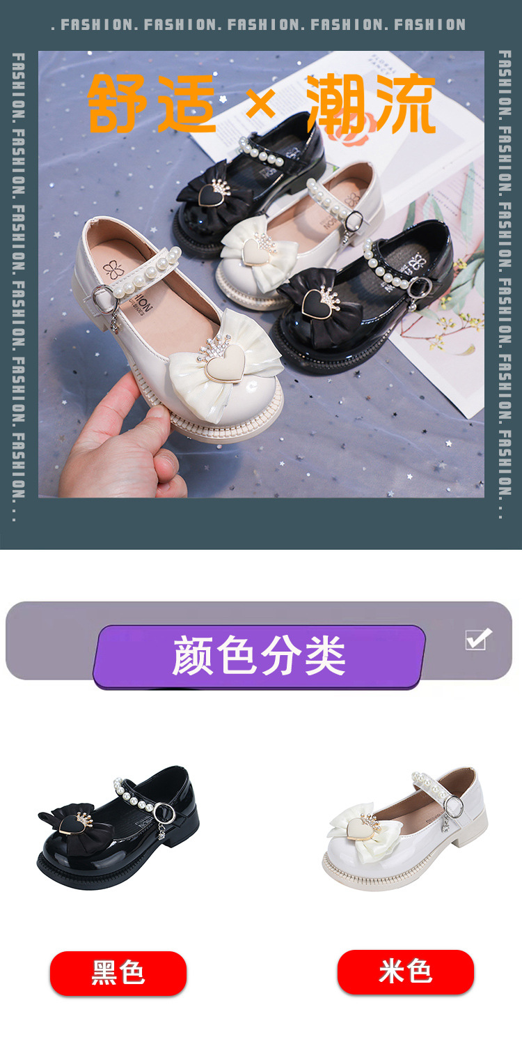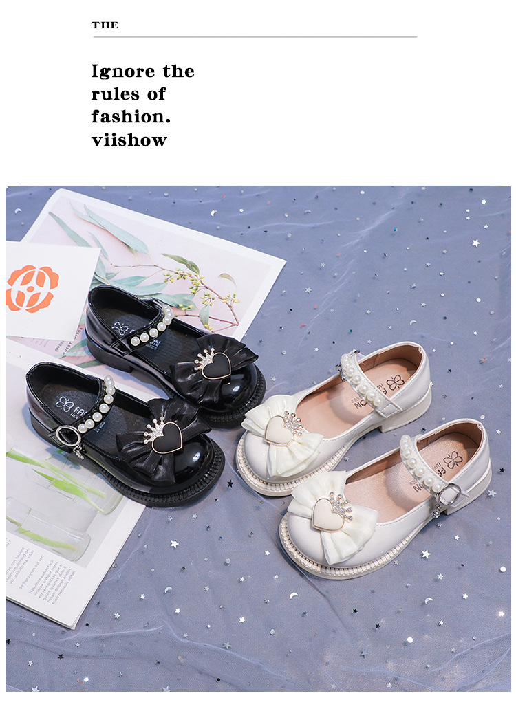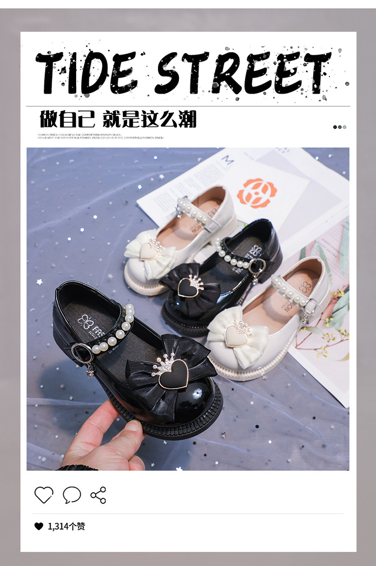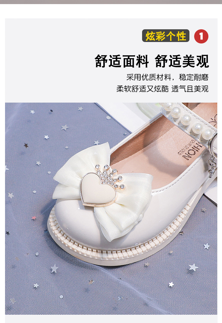 소녀 가죽 신발 봄과 가을 새로운 어린이 공주 미끄럼 방지 진주 활 액세서리 샤넬 스타일 가죽 신발 편안하고 트렌디