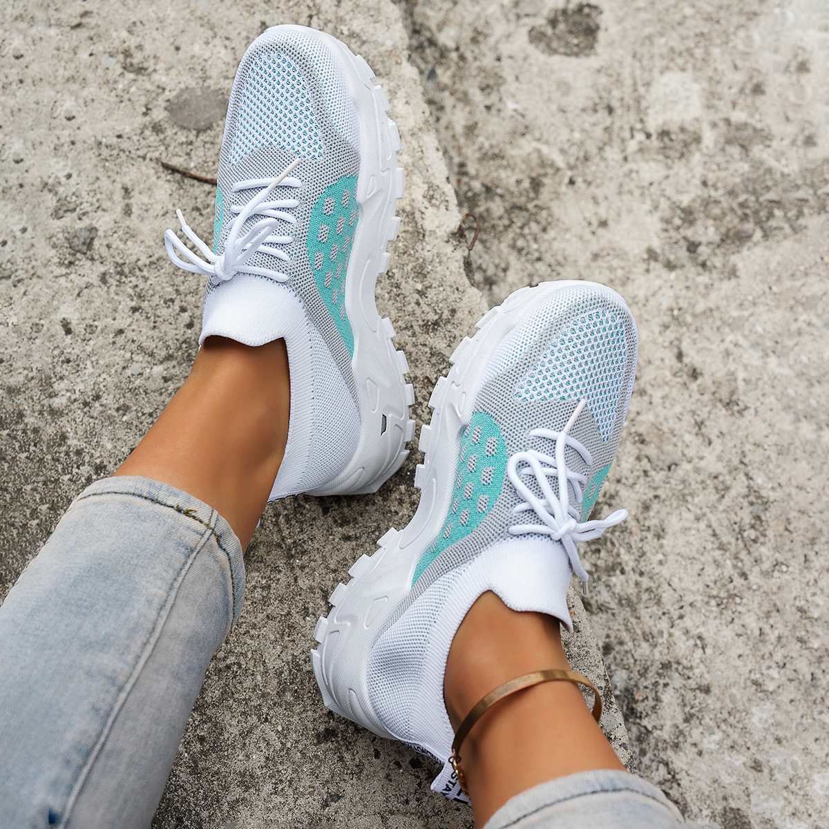 2025 여성 신발 플라이 니트 통기성 아빠 신발 여성 패션 다목적 스포츠 신발 두꺼운 밑창 캐주얼 유행 신발 캐주얼하고 편안한스토어 가기