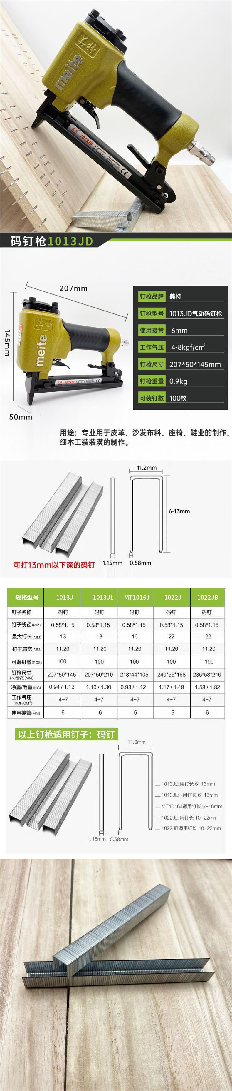 미터 1013J 코드 네일 건 에어 네일 건 공압 N 네일 건 공압 도구 U 네일 건 목공 도어 타입 하이브리드