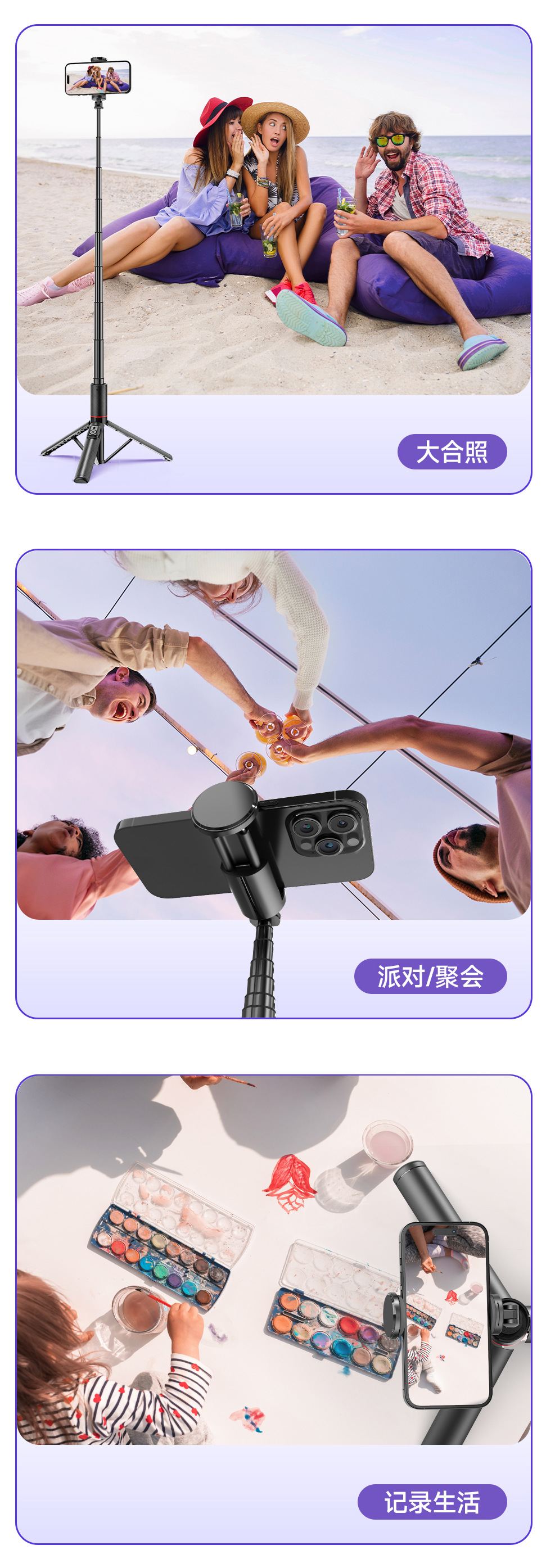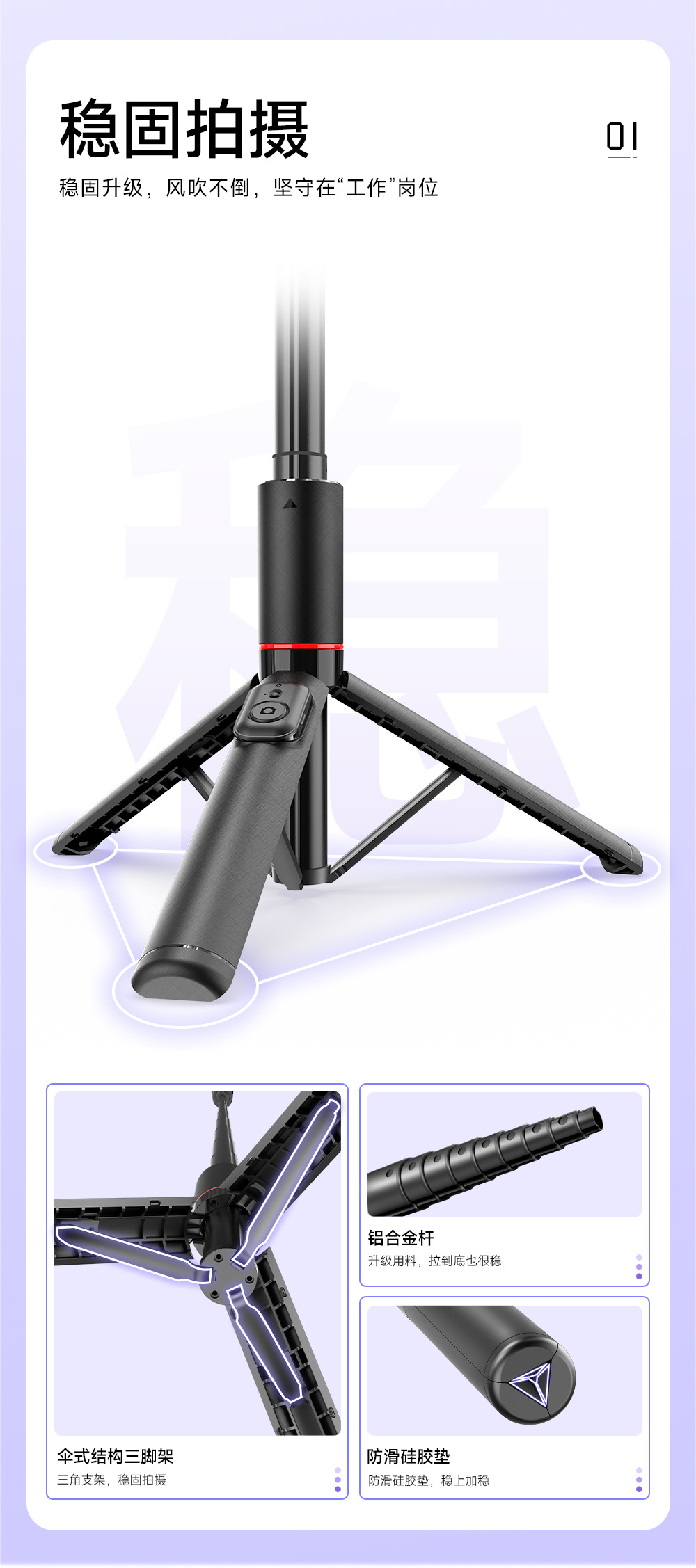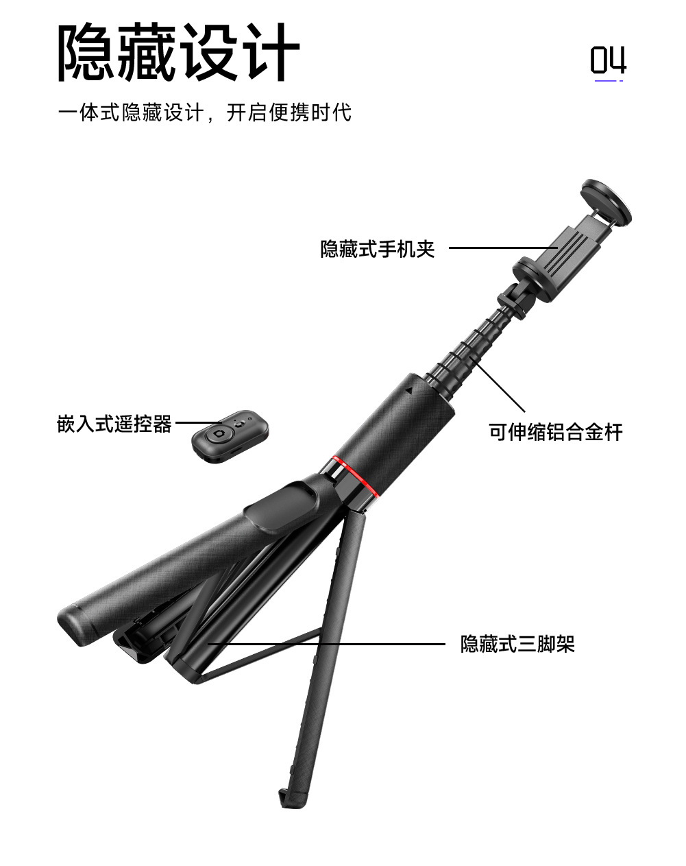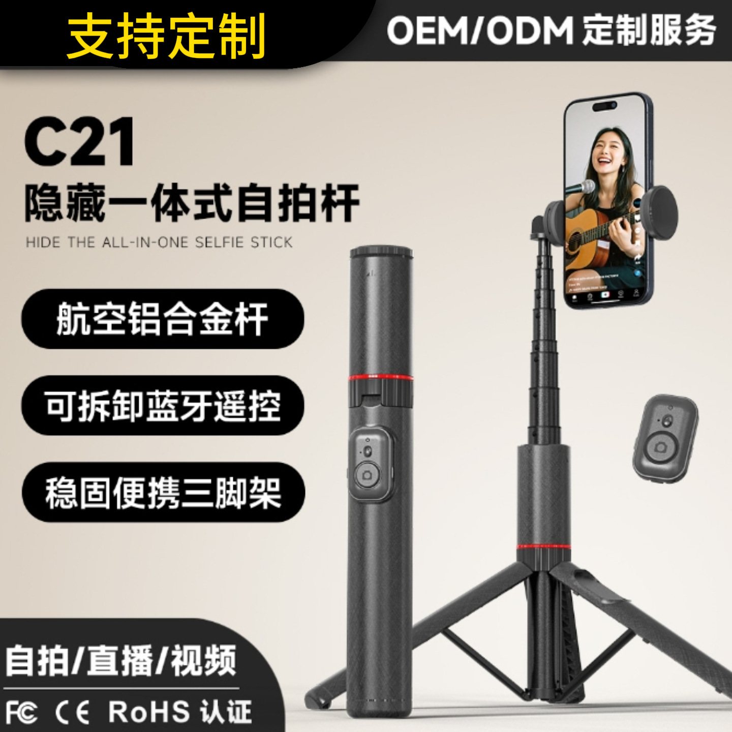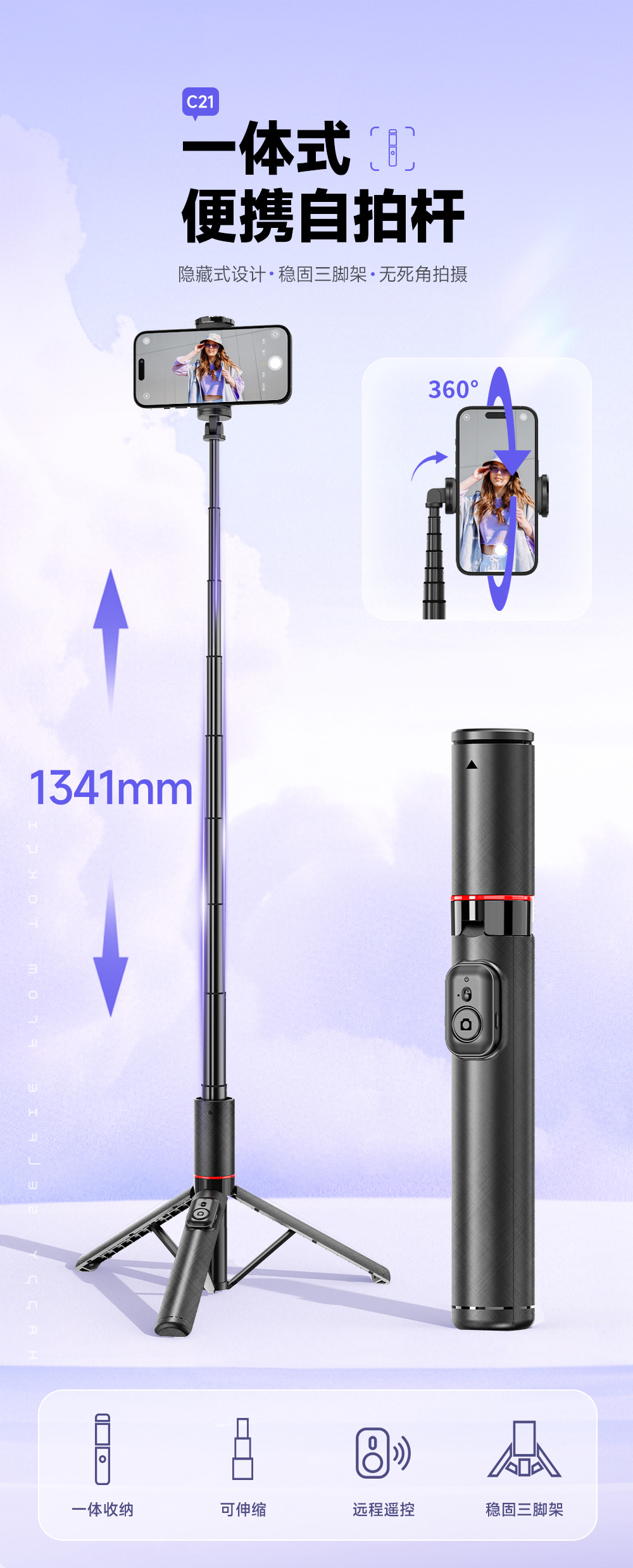 히든 1.4m 포지션 셀카봉 C21 여행용 휴대폰 삼각대 라이브 방송 사진 촬영 스탠드