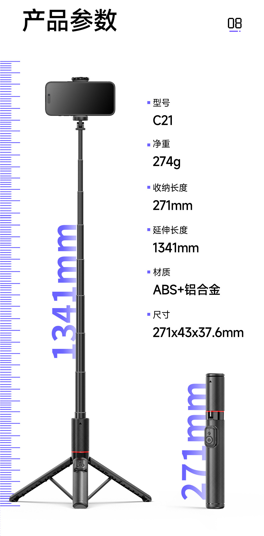 히든 1.4m 포지션 셀카봉 C21 여행용 휴대폰 삼각대 라이브 방송 사진 촬영 스탠드스토어 가기