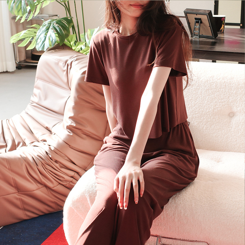 맞춤형 봄 여름 신상 모달 잠옷, 유럽 및 미국 여성용 아우터, 브라운 홈웨어, 면 요가 반팔 바지스토어 가기