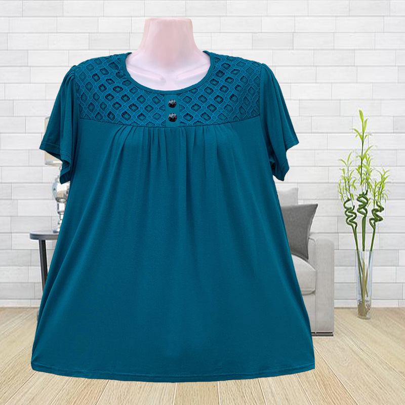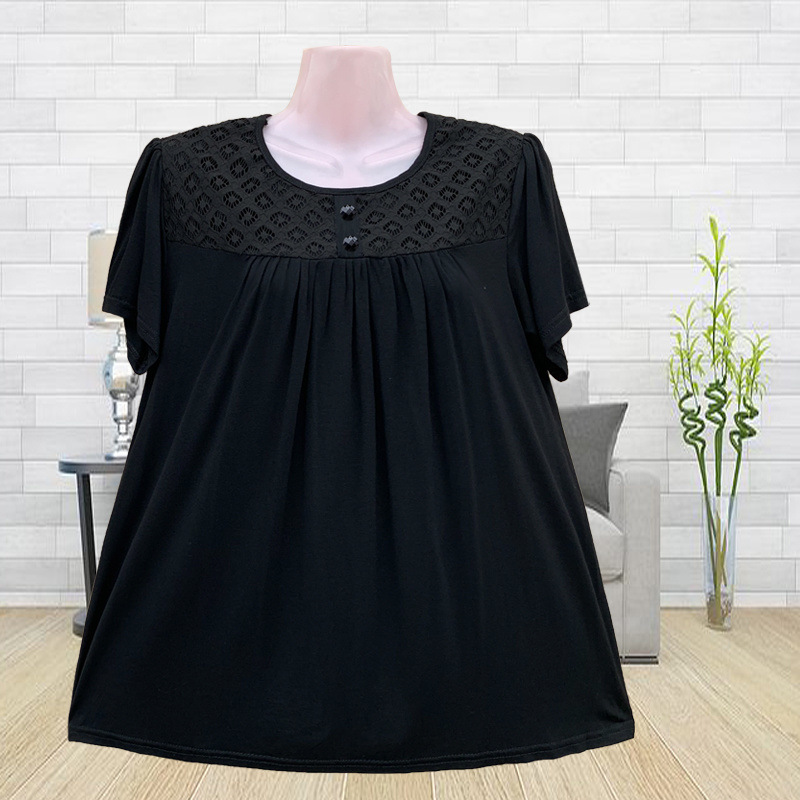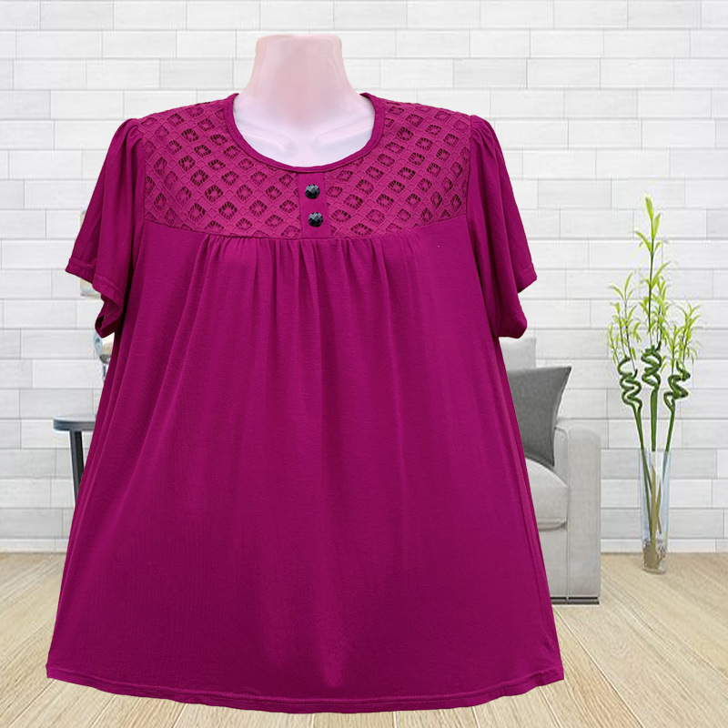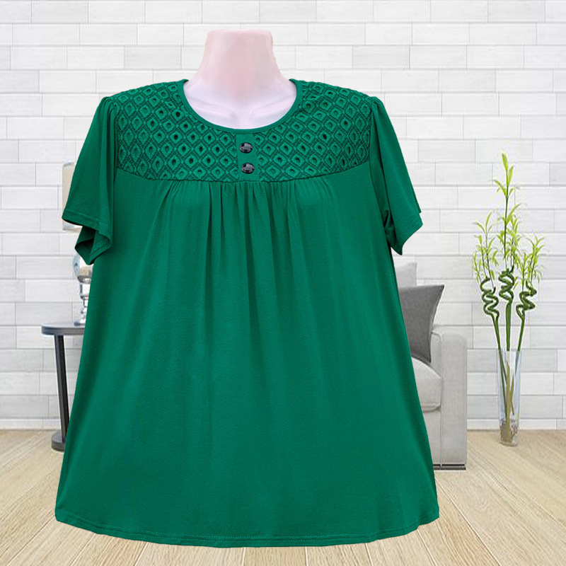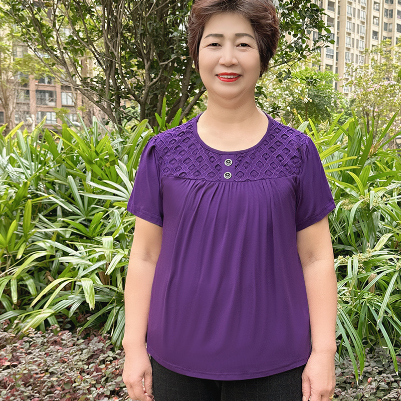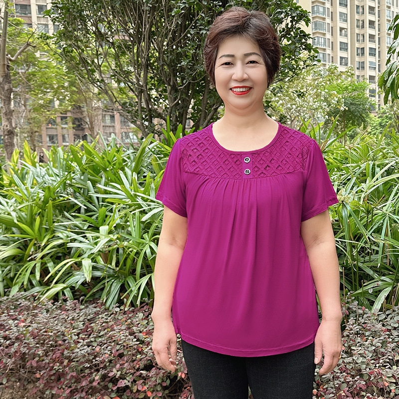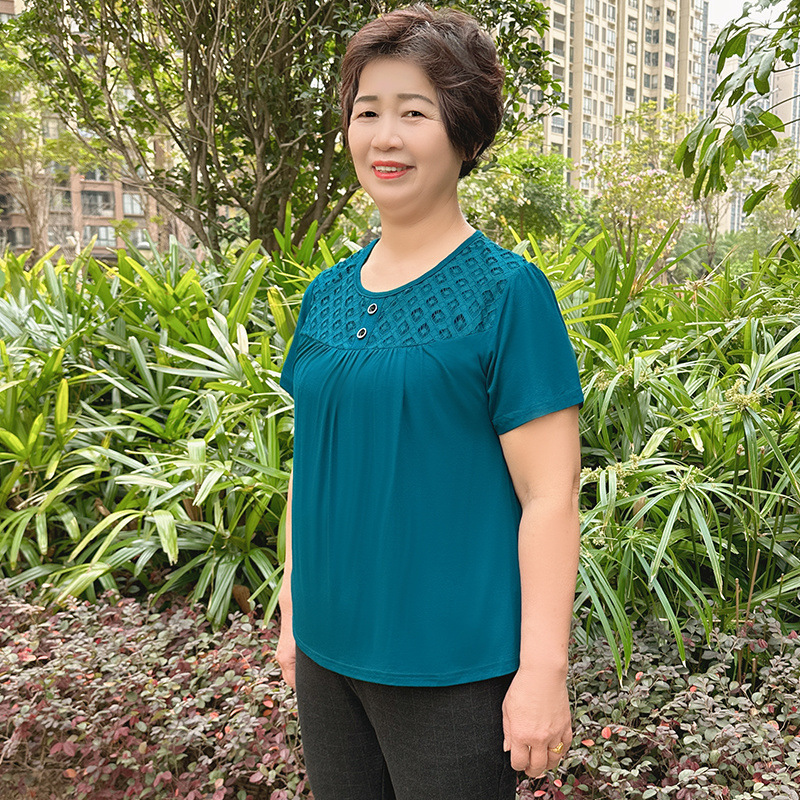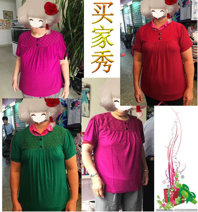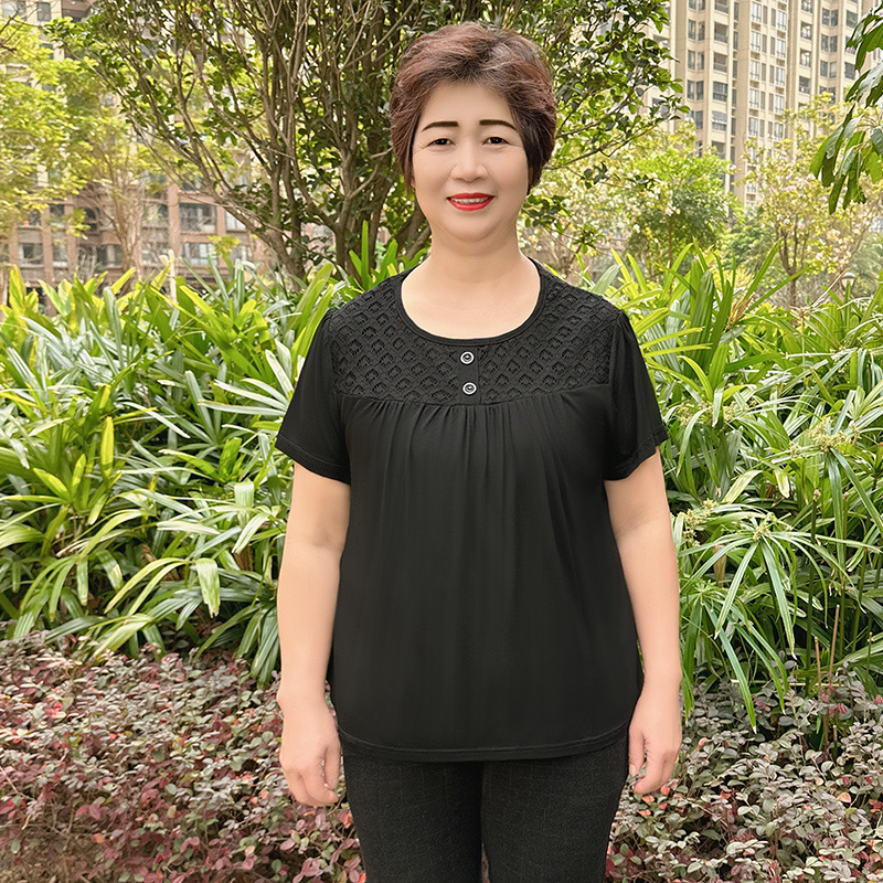 중년 및 노인 여름 여성 플러스 사이즈 짧은 소매 및 지방 증가 지방 어머니 코트 면화 셔츠 승무원 목 200kg 할머니스토어 가기