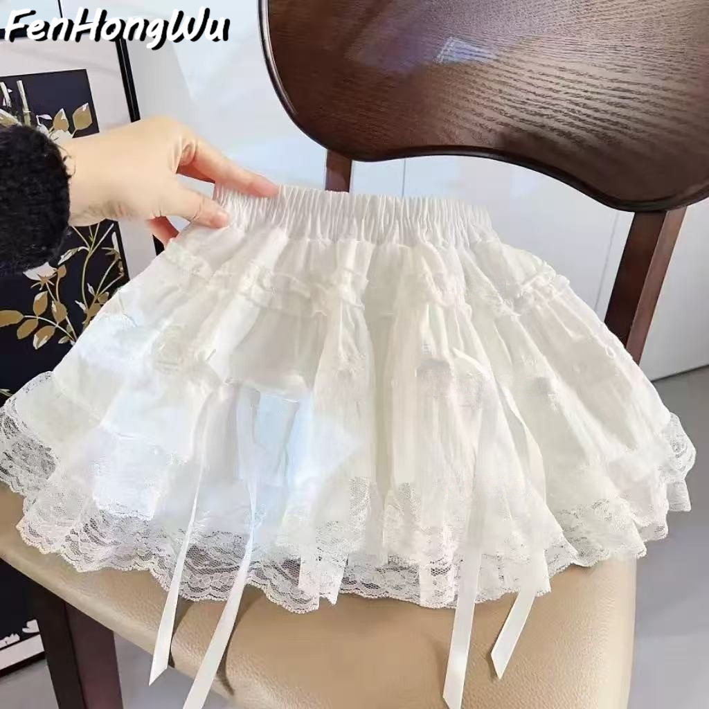 [핑크 집] 여자 얇은 귀여운 케이크 치마 여름 새로운 어린이 레이스 요정 치마 귀여운 치마