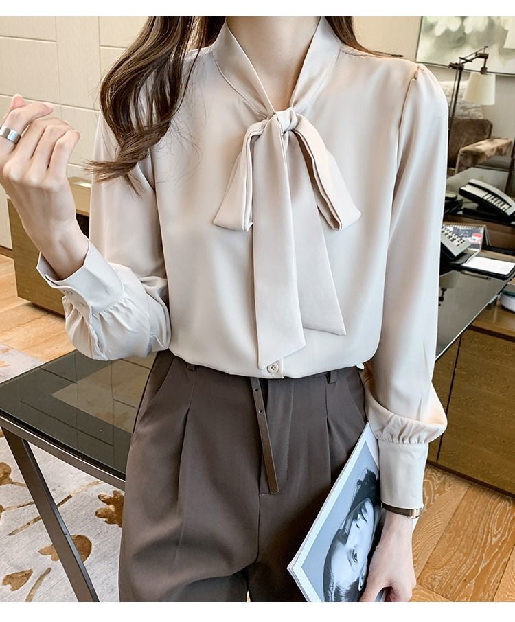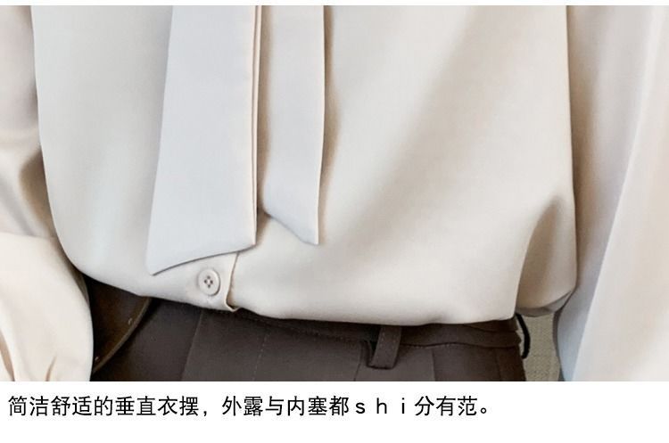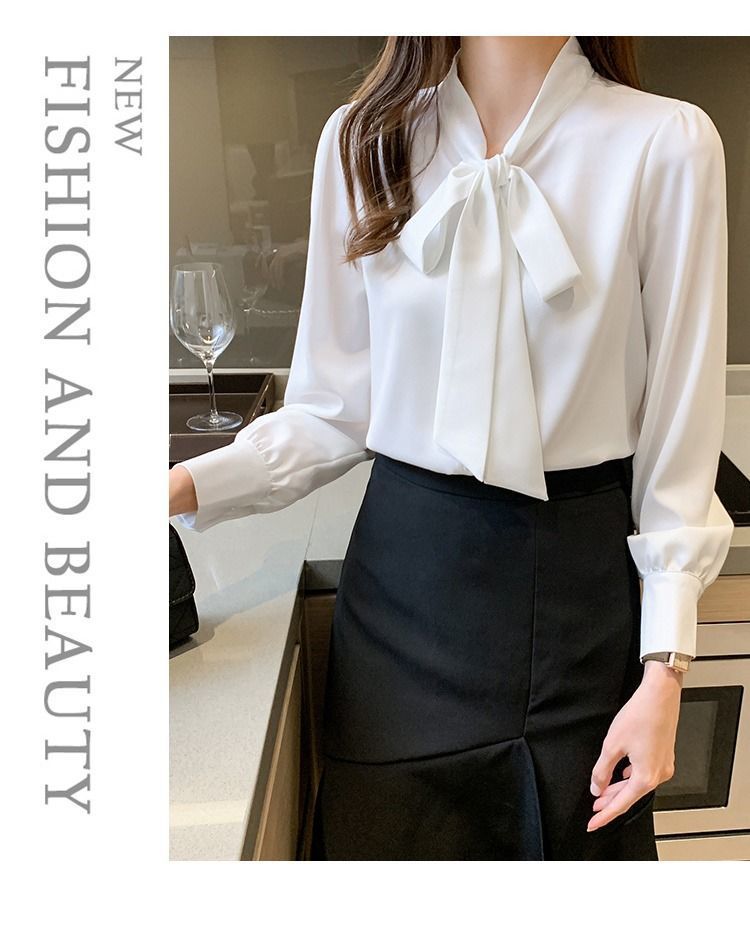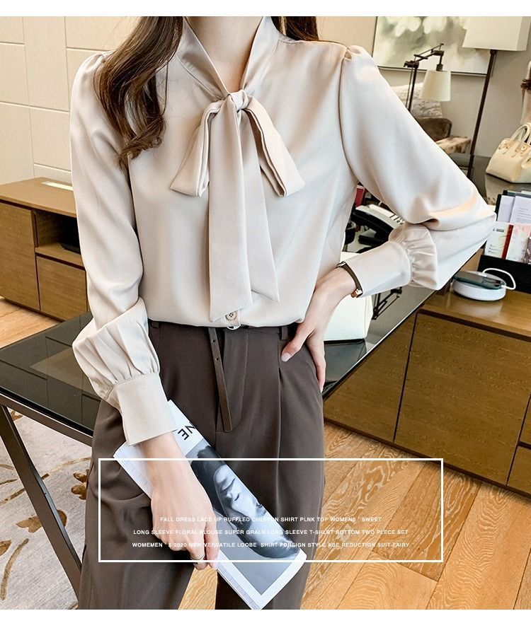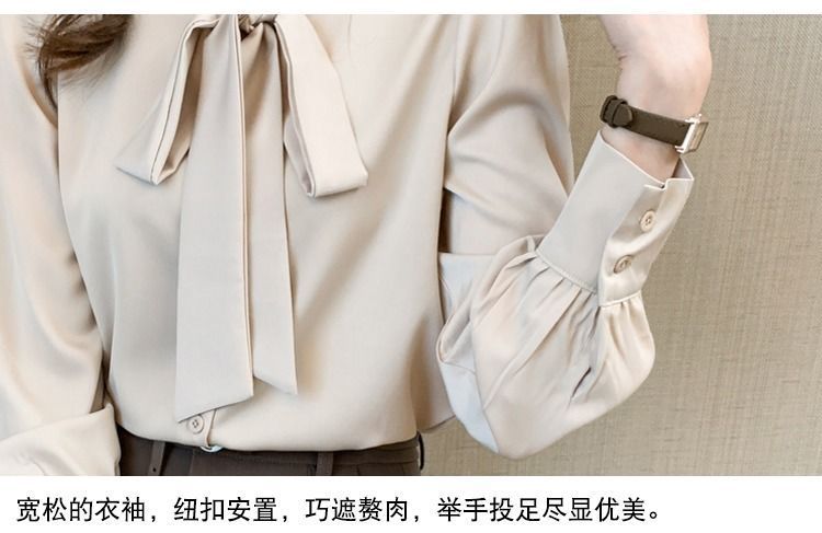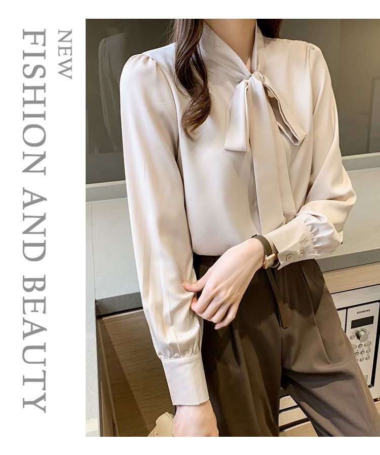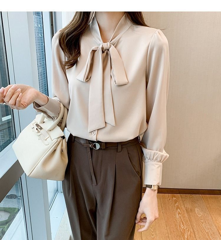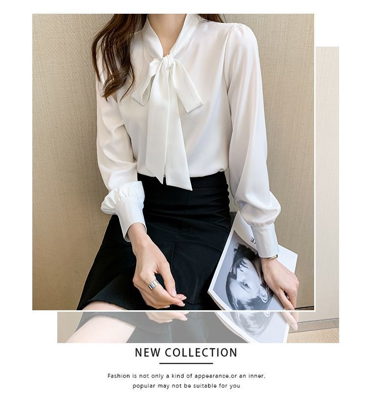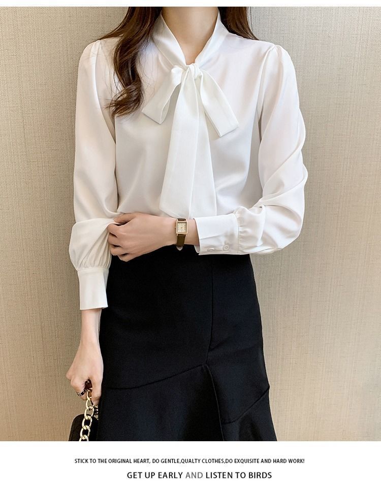 봄과 가을의 새로운 활 레이스 업 쉬폰 셔츠 여성용 긴팔 느슨한 일회용 우아한 솔리드 컬러 올 매치 탑스토어 가기