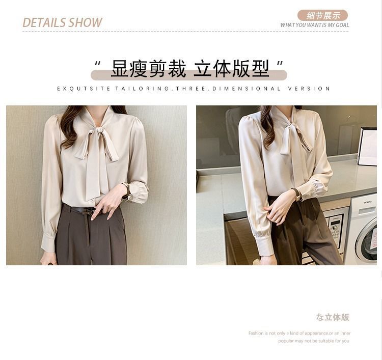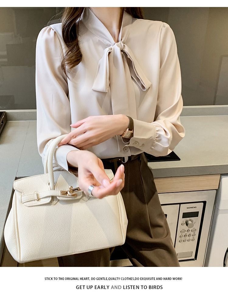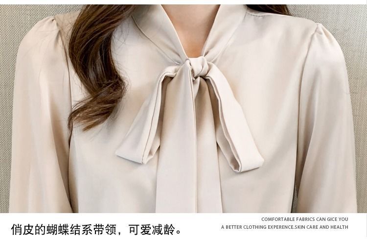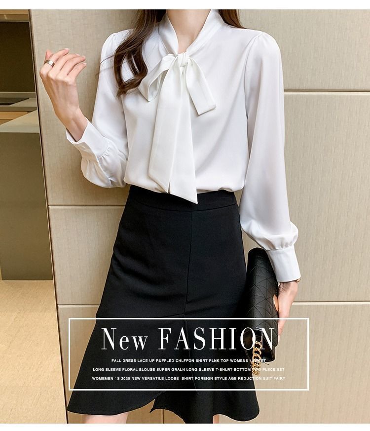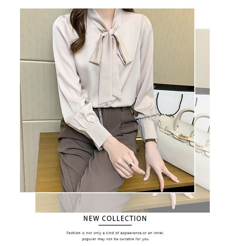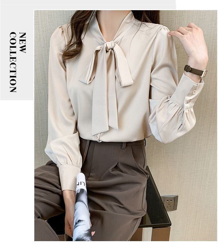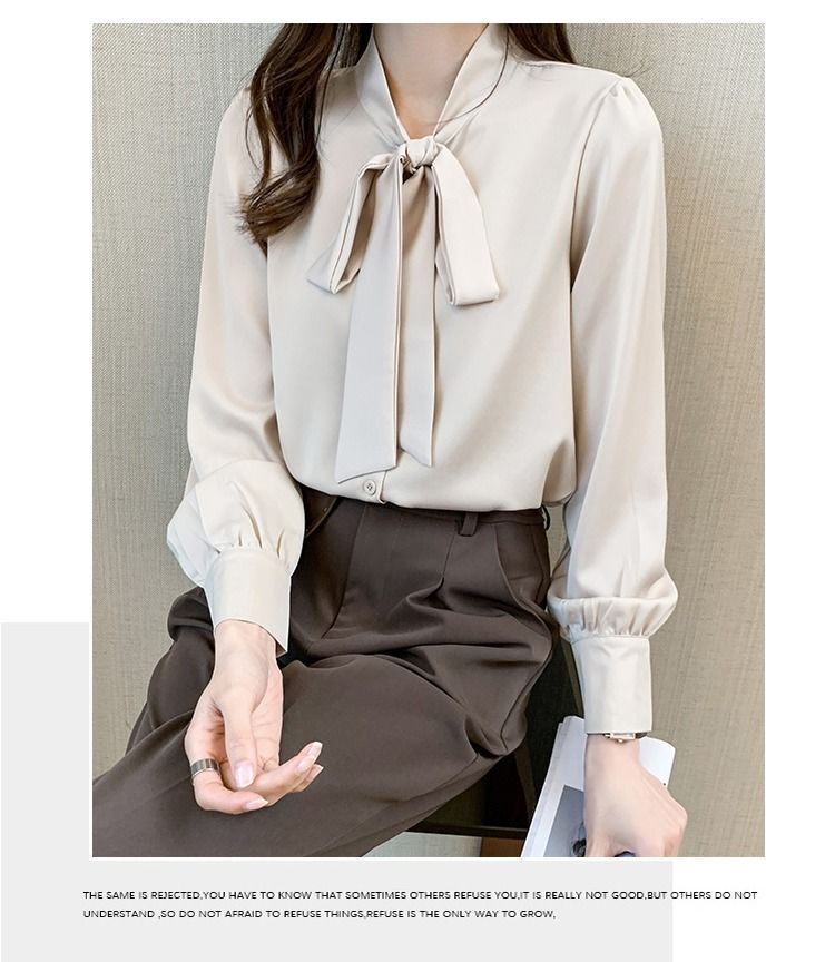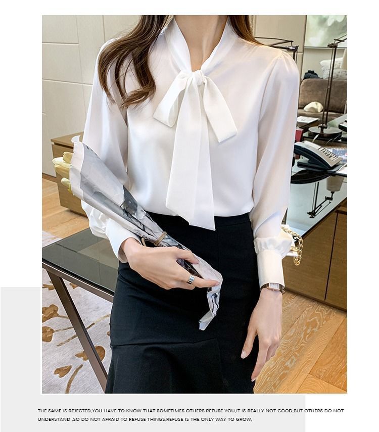 봄과 가을의 새로운 활 레이스 업 쉬폰 셔츠 여성용 긴팔 느슨한 일회용 우아한 솔리드 컬러 올 매치 탑스토어 가기