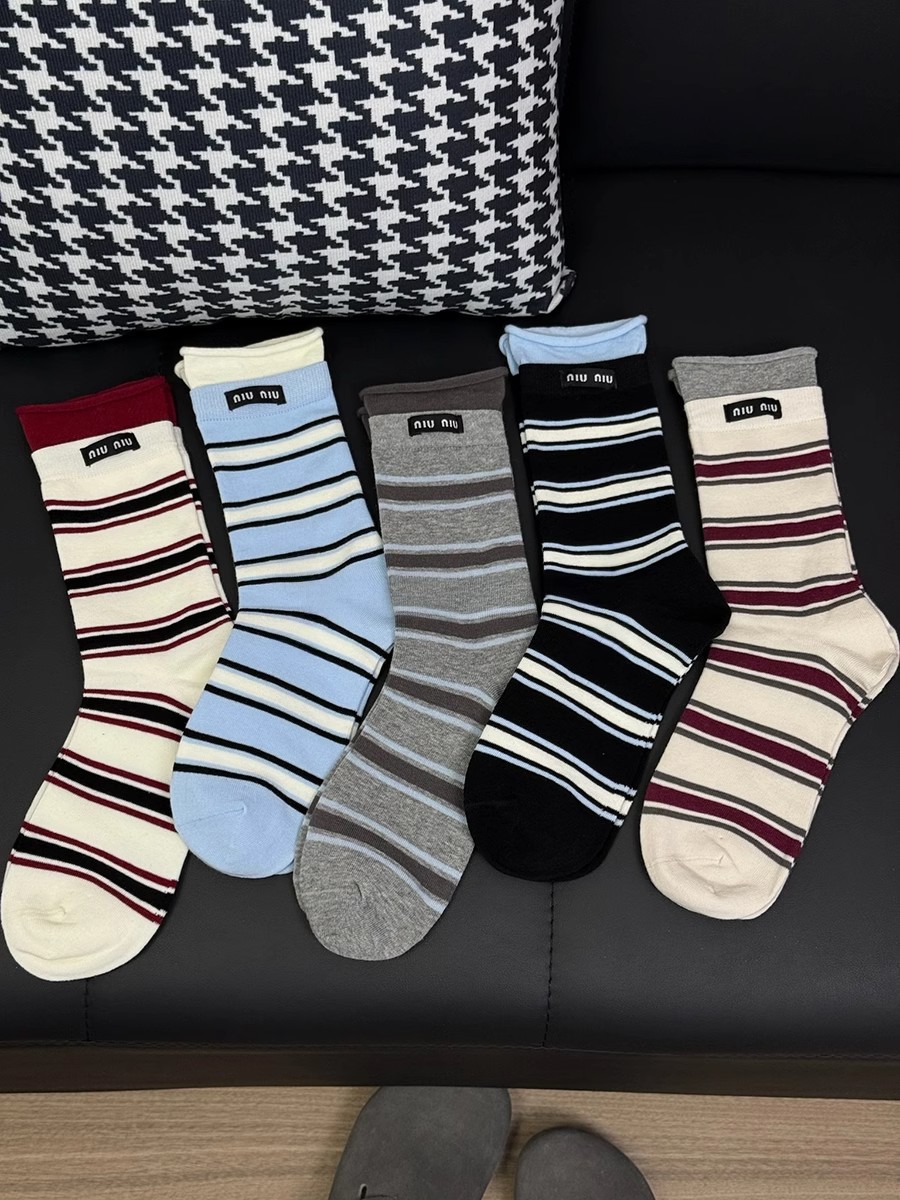 컬 스트라이프 양말 여자 중간 길이 양말 코튼 양말 봄과 가을 일본 스포츠 Ins 유행 천 라벨 여름 얇은 스타킹