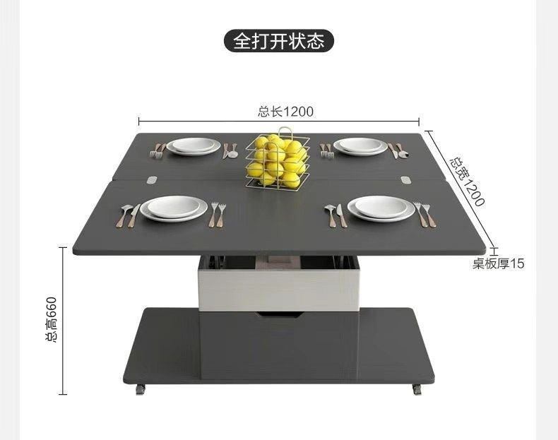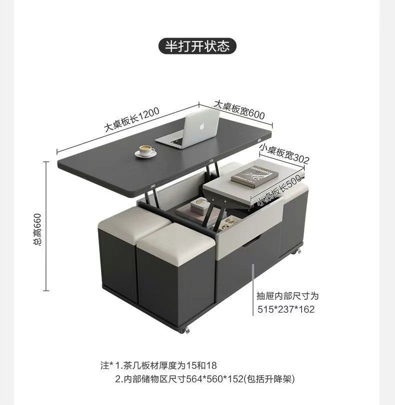 록 보드 다기능 커피 테이블 작은 아파트 차 세트 테이블 가구 식탁 리프팅 통합 차 테이블 거실 저장 테이블