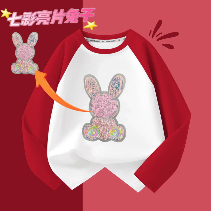 100 면 어린이 컬러 긴 소매 티셔츠 새로운 창조적 인 조각 다채로운 토끼 조각 로프 소매 로즈 긴 소매스토어 가기