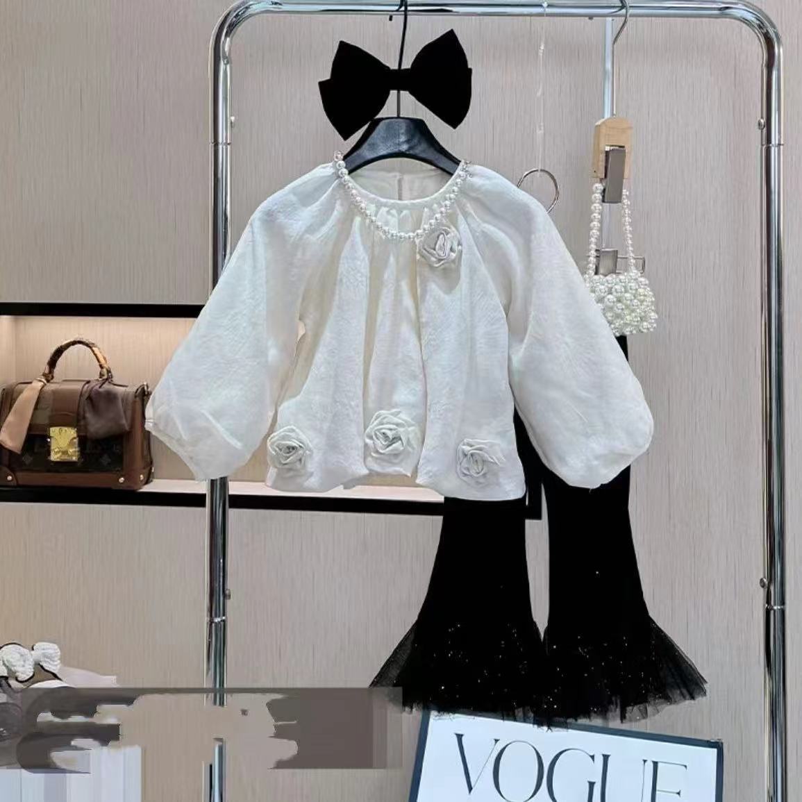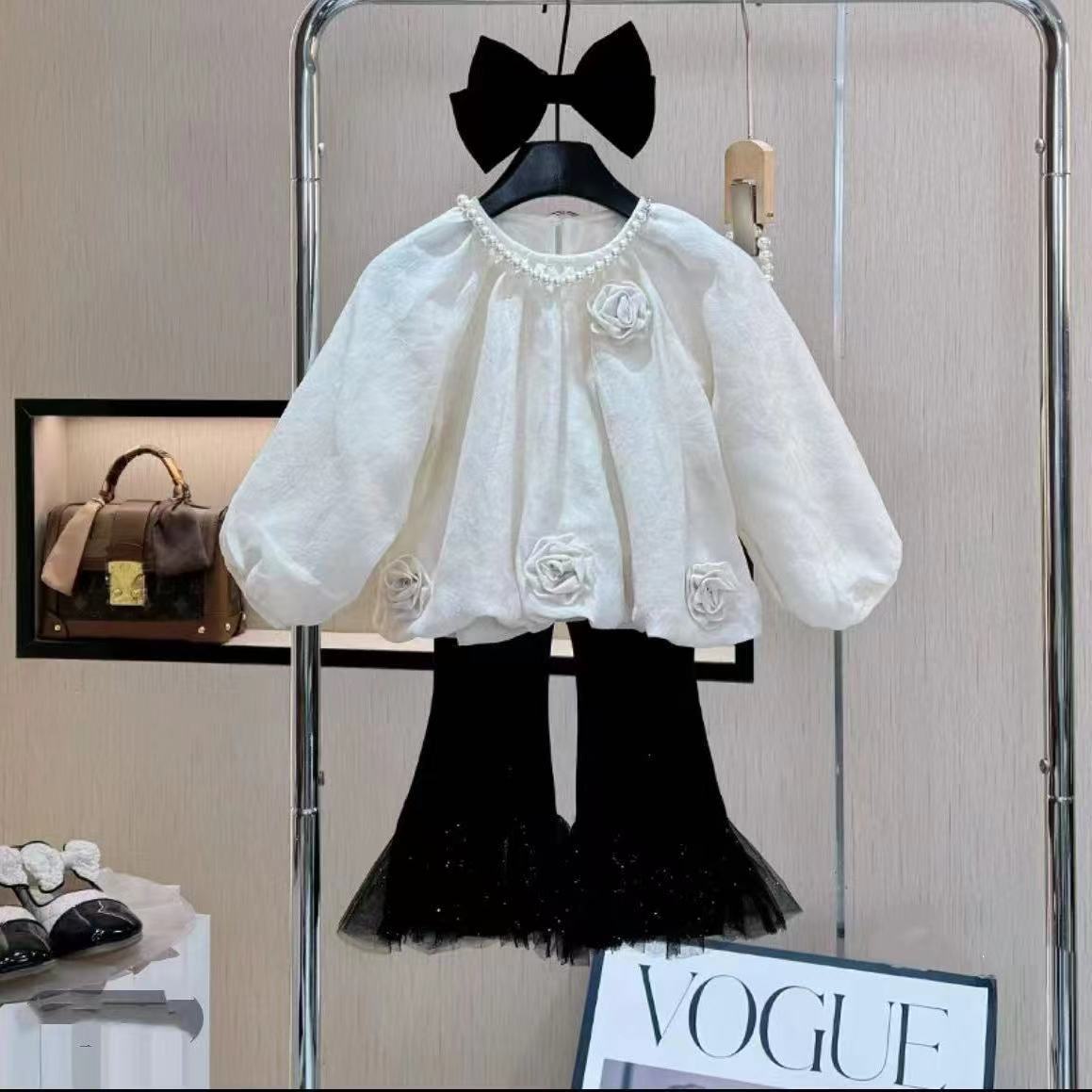 소녀 인형 셔츠 2025 봄과 가을 새로운 어린이 한국 스타일 서양식 아기 달콤한 크루 넥 긴 소매 바지 세트