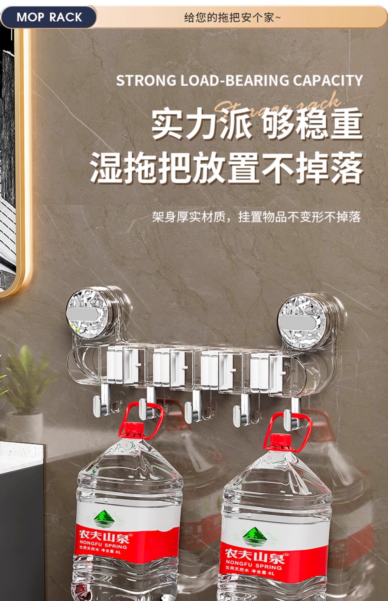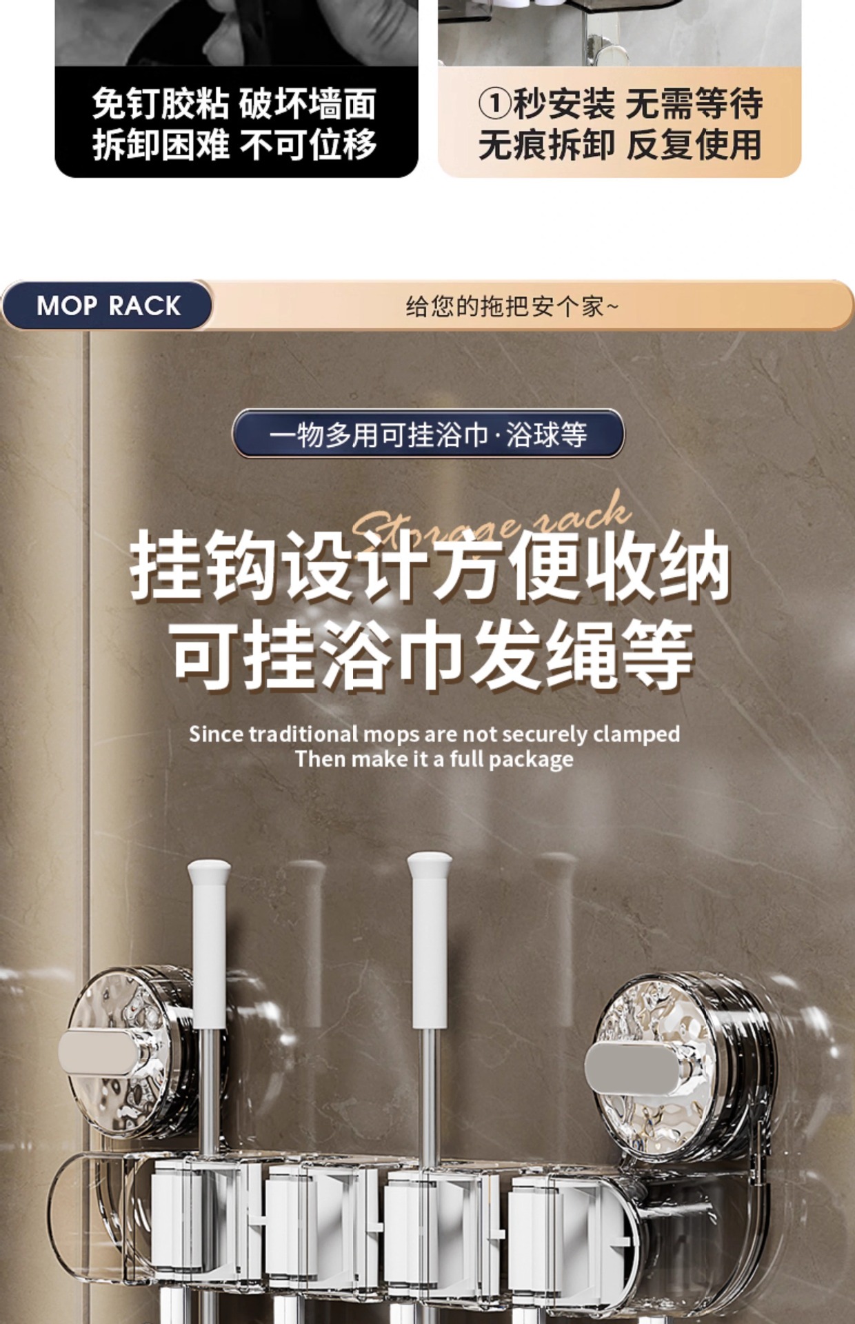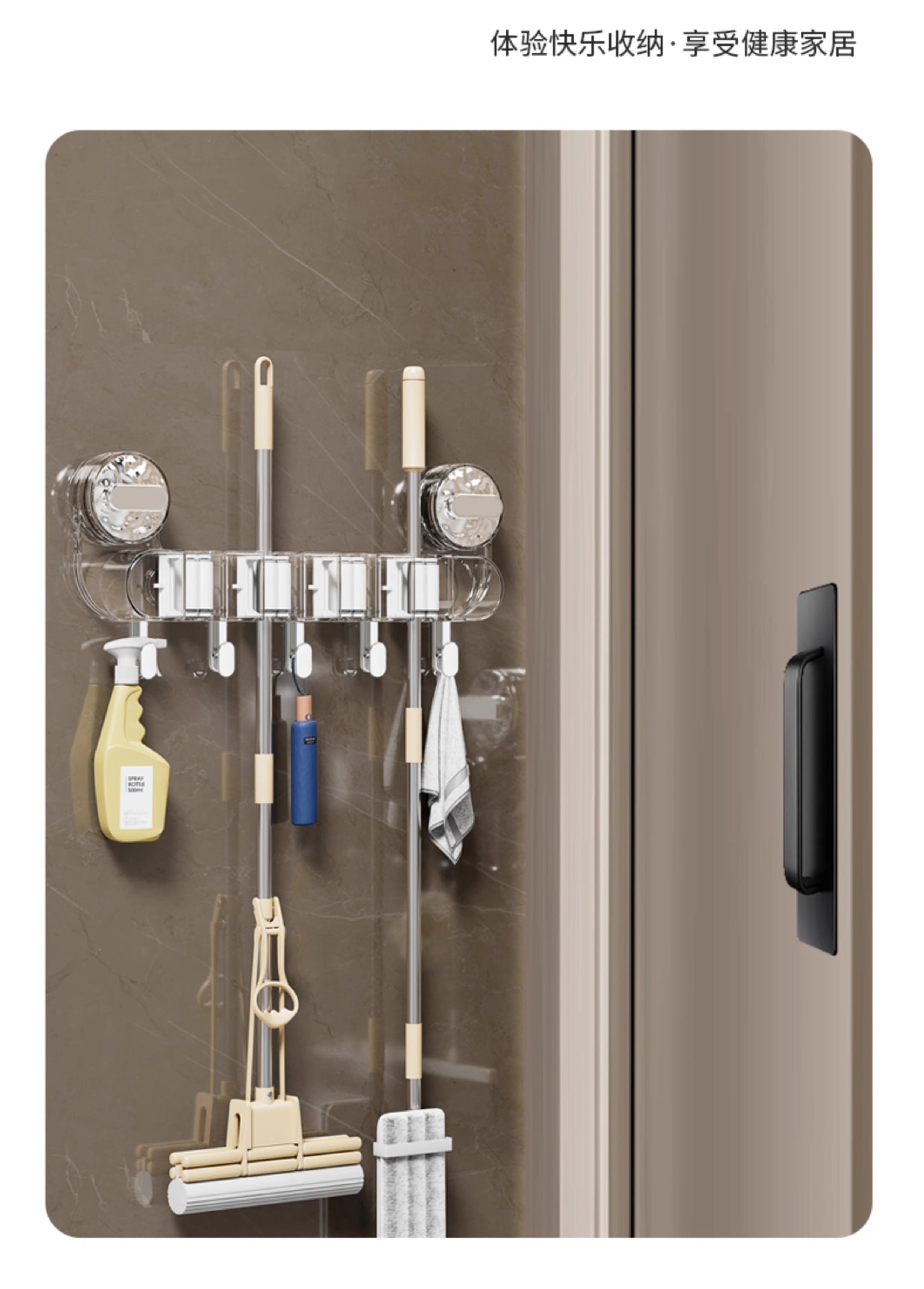 이중 흡착컵 걸레 클립 걸이 벽걸이 수납 선반 욕실 강력한 걸레 걸이 빗자루 고정 도매