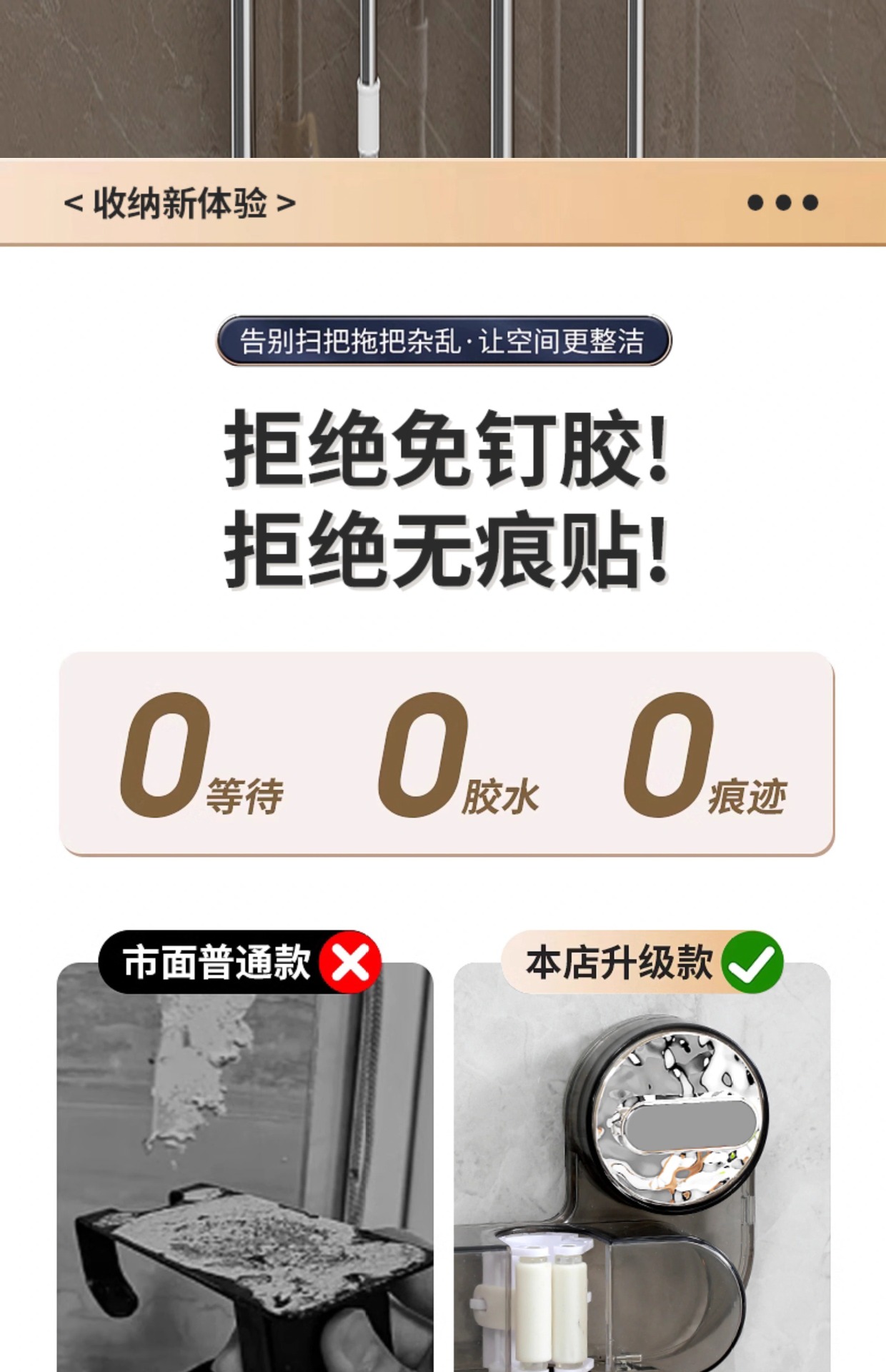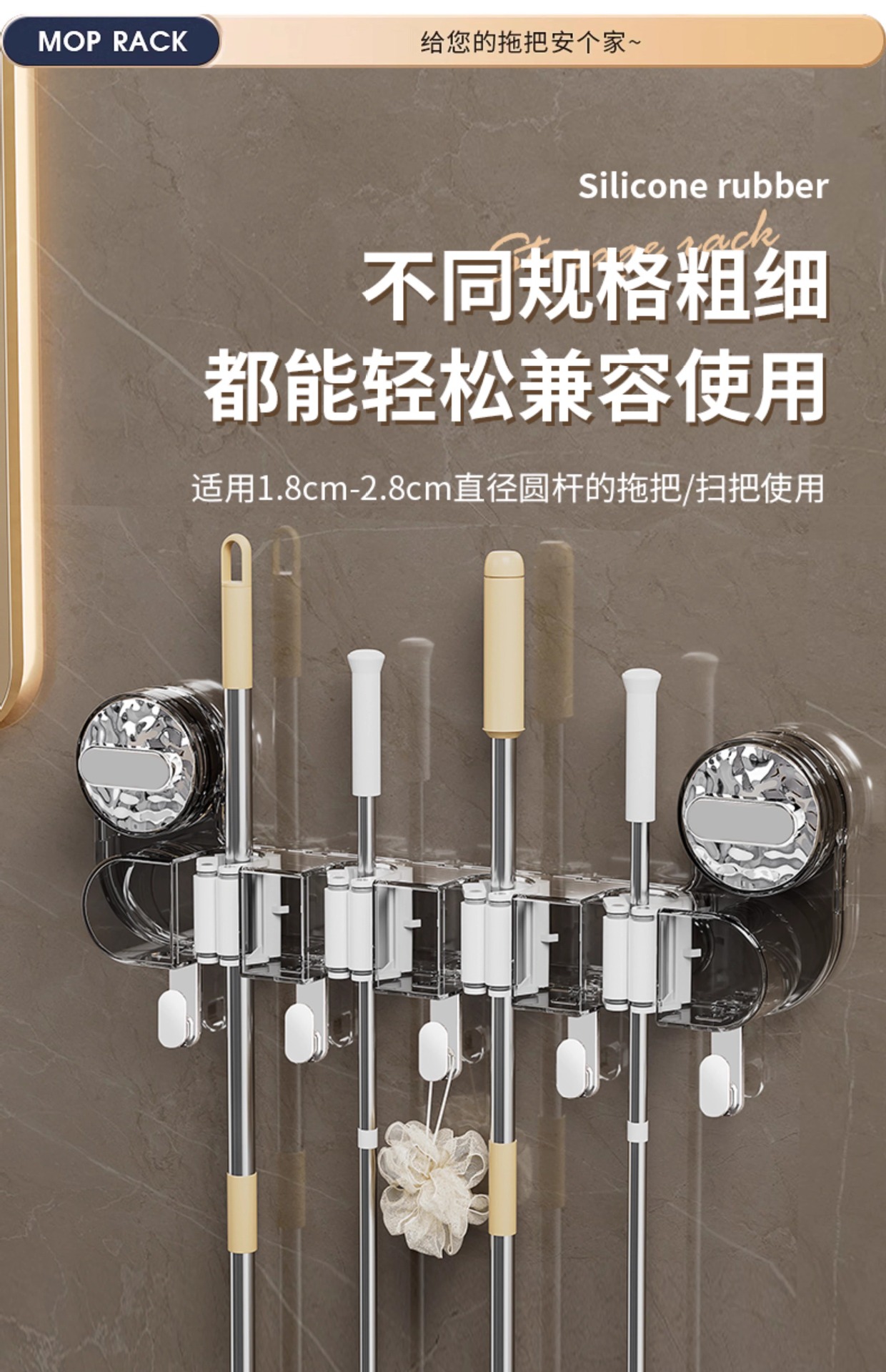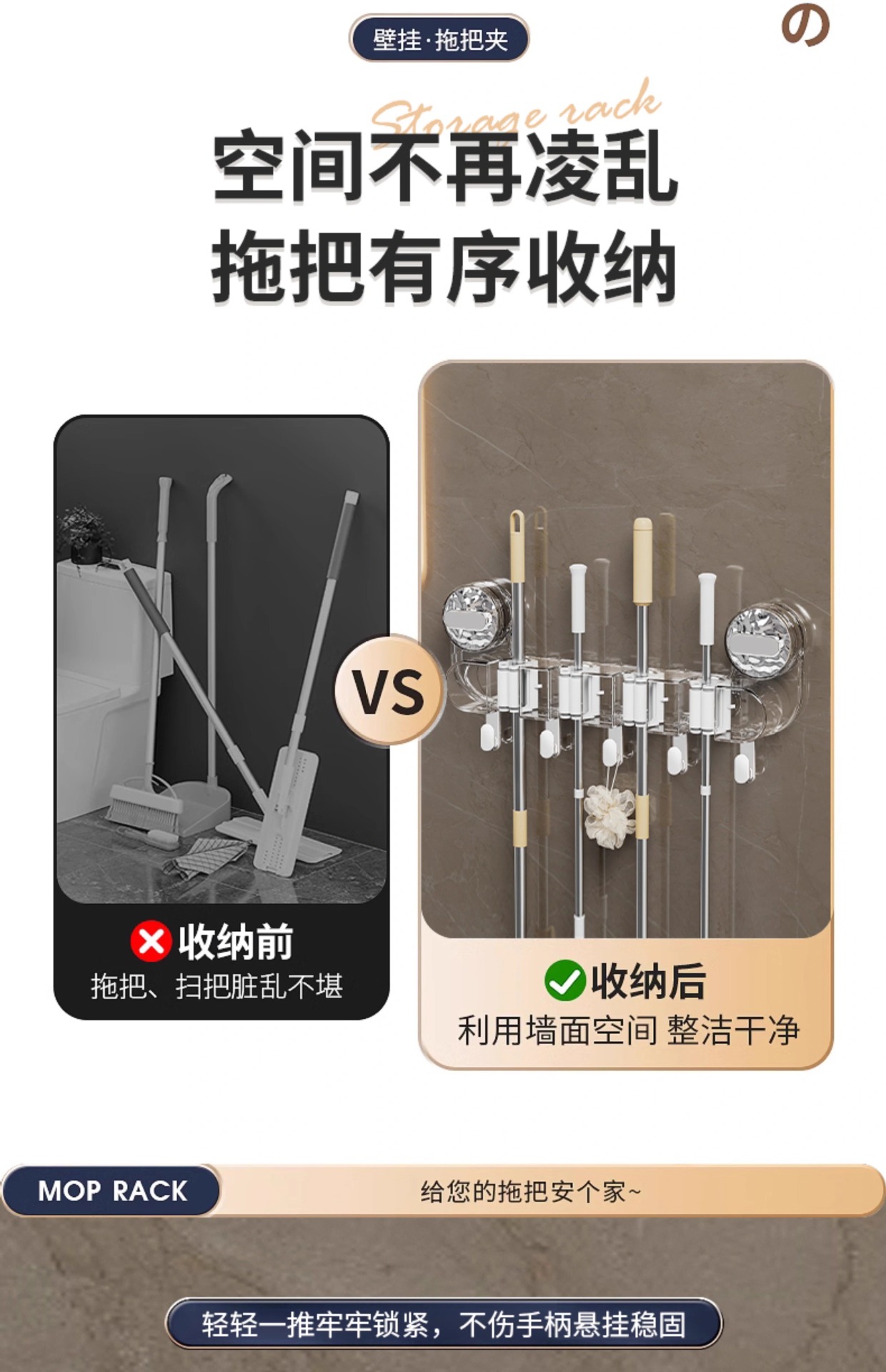 이중 흡착컵 걸레 클립 걸이 벽걸이 수납 선반 욕실 강력한 걸레 걸이 빗자루 고정 도매