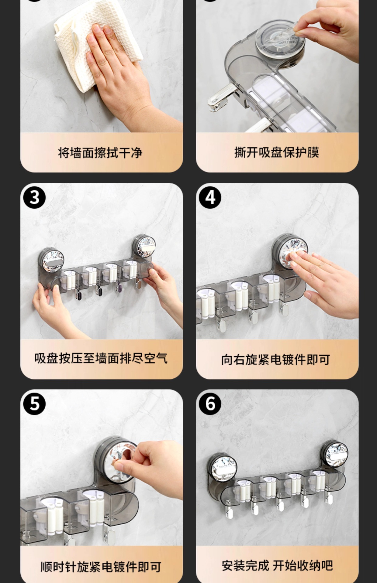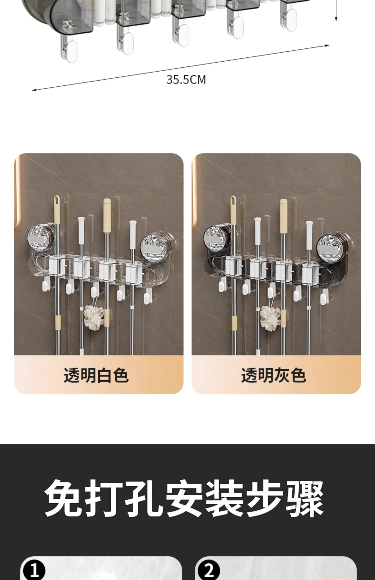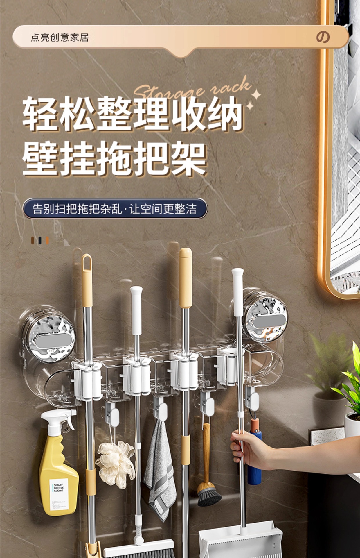 이중 흡착컵 걸레 클립 걸이 벽걸이 수납 선반 욕실 강력한 걸레 걸이 빗자루 고정 도매스토어 가기