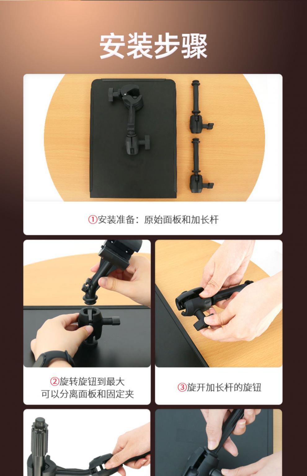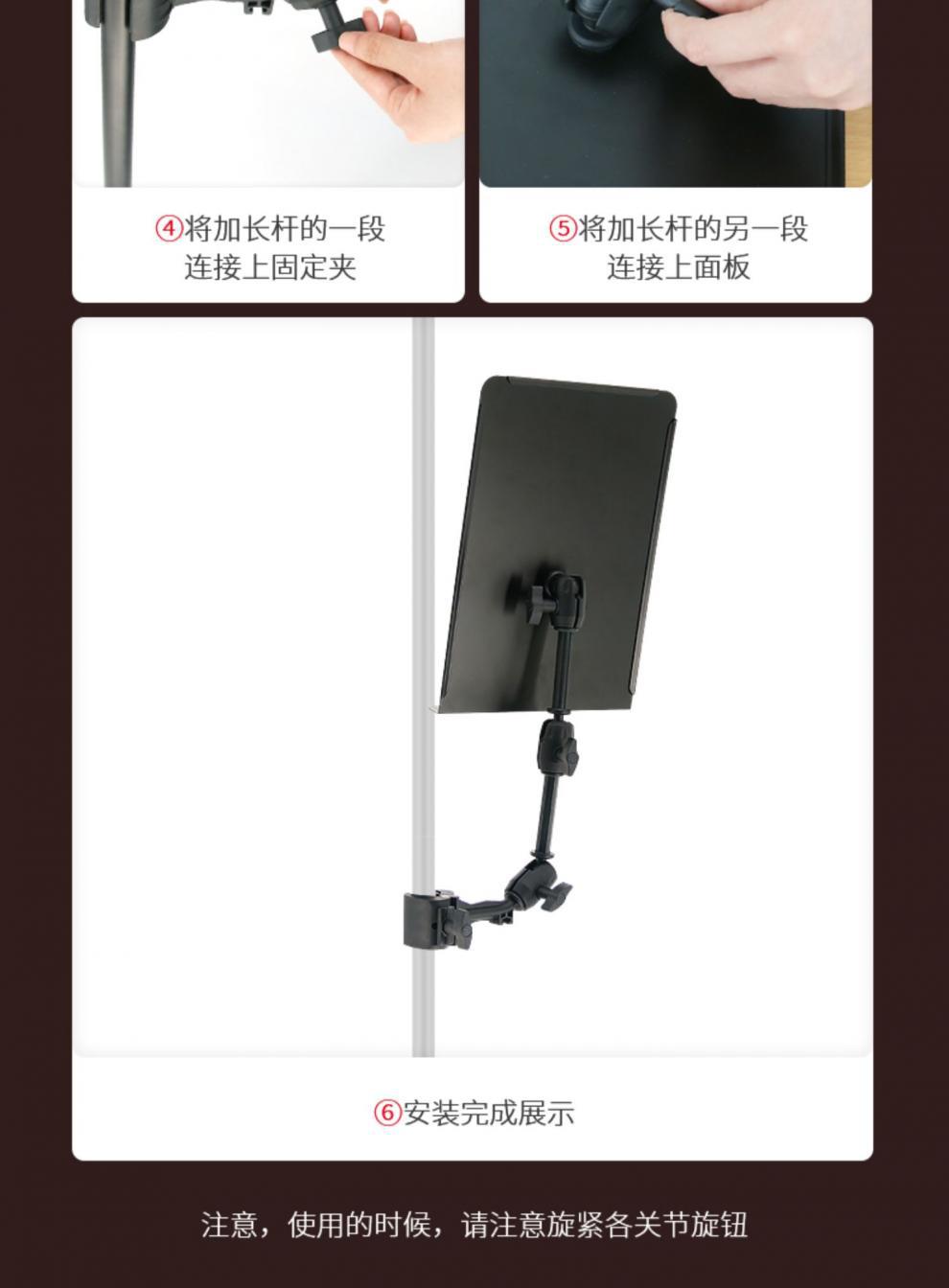 • 3개의 확장 섹션이 있는 클립온 보면대 접이식 버전