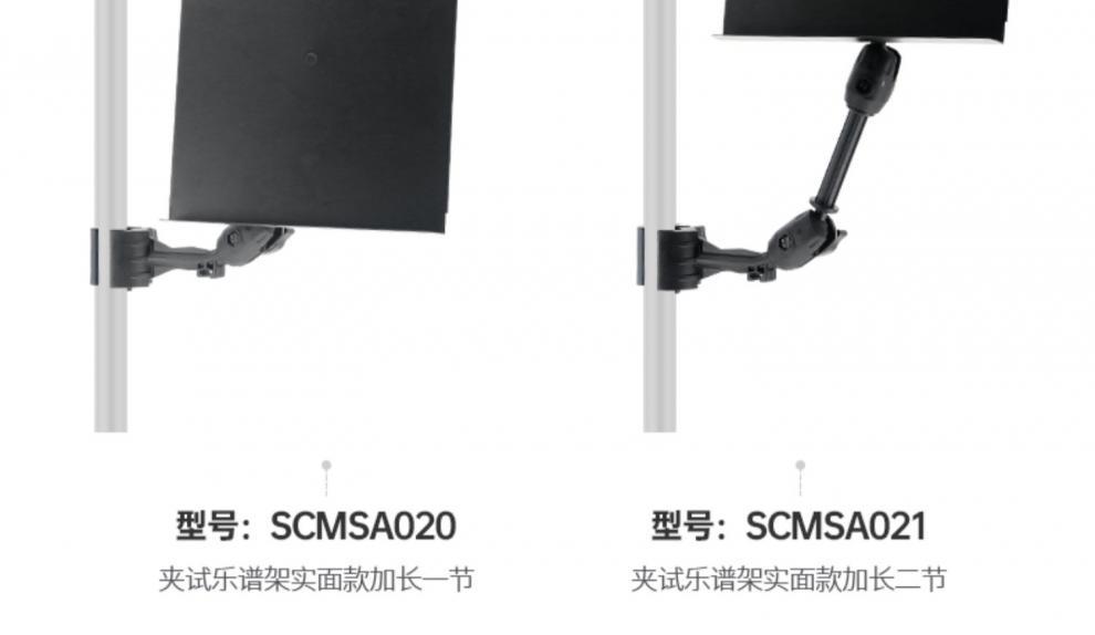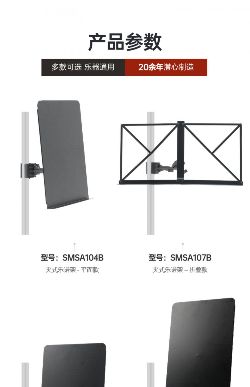 • 2개의 확장 섹션 + 2개의 악보 클립이 있는 클립온 악보 스탠드 접이식 버전