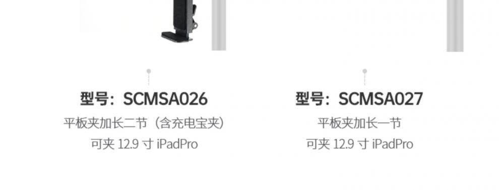• 태블릿 클립 연장 2개 섹션 + 보조 배터리 클립