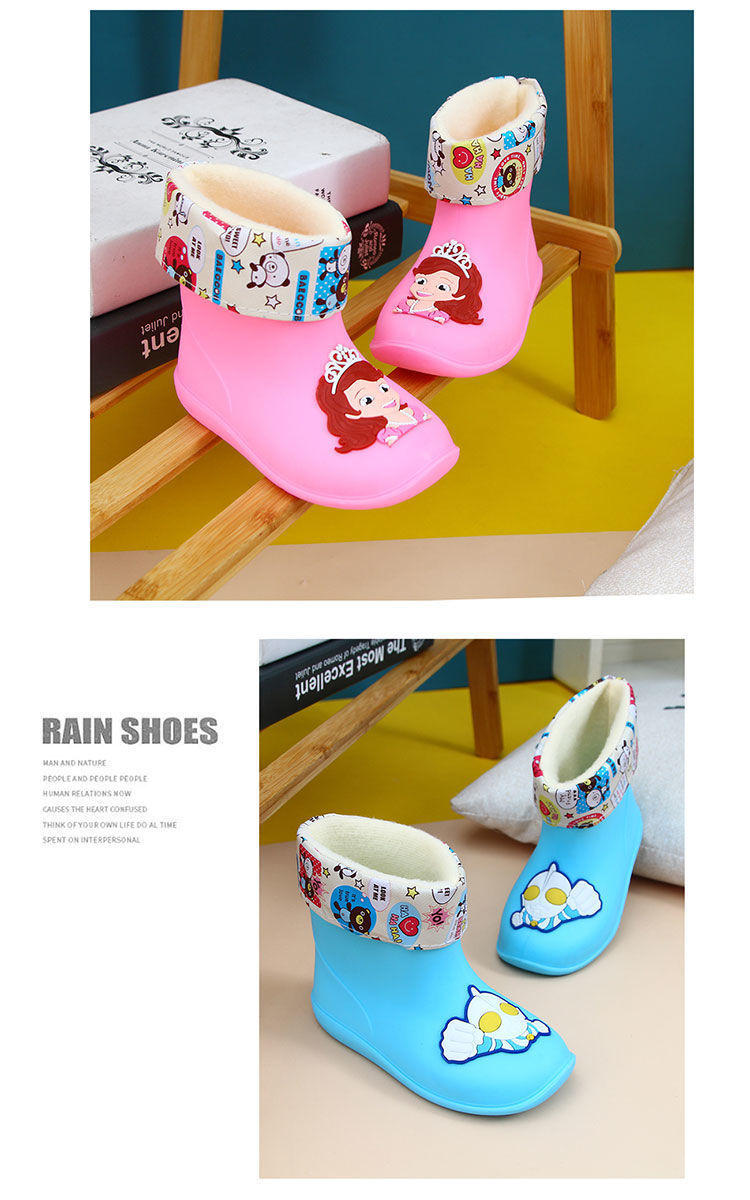 아기 어린이 비 부츠 남자와 여자의 귀여운 만화 따뜻한 패션 만화 어린이 비 부츠 따뜻한 면화 미끄럼 방지 물 신발