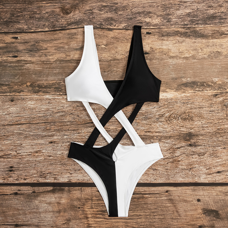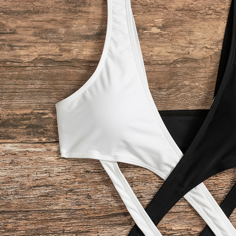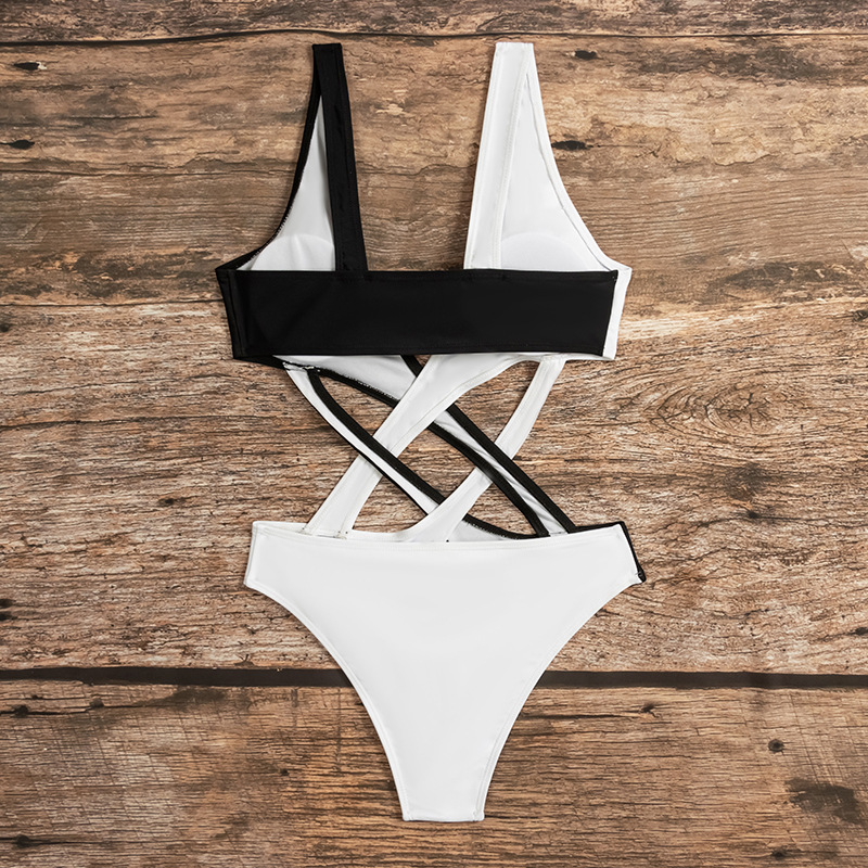 2025 새로운 컬러 매칭 나일론 원피스 수영복 비키니 수영복 유럽과 미국의 섹시한 단색 섹시한 크로스 BIKINI스토어 가기