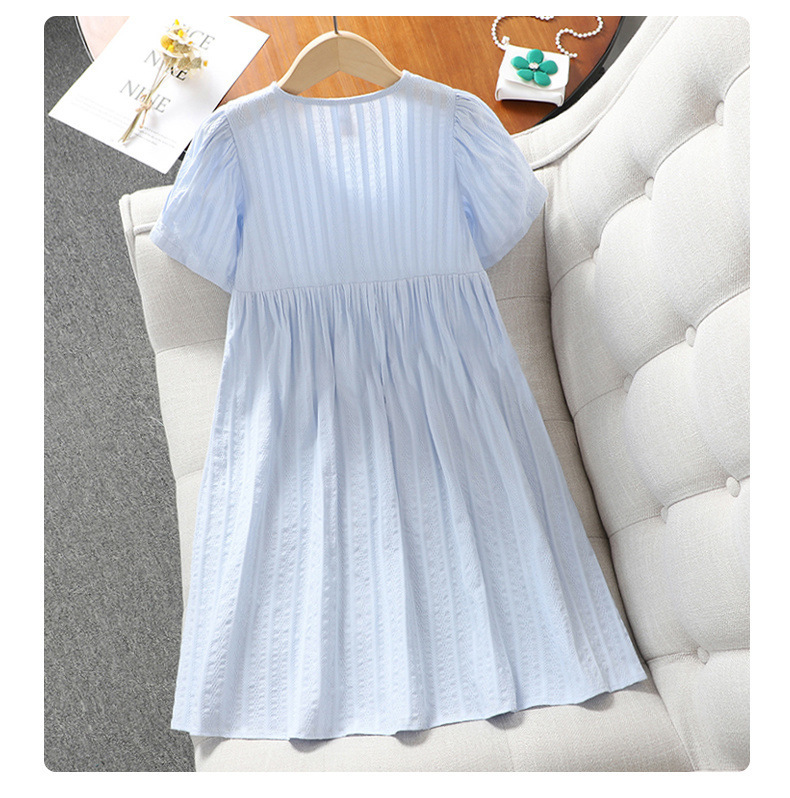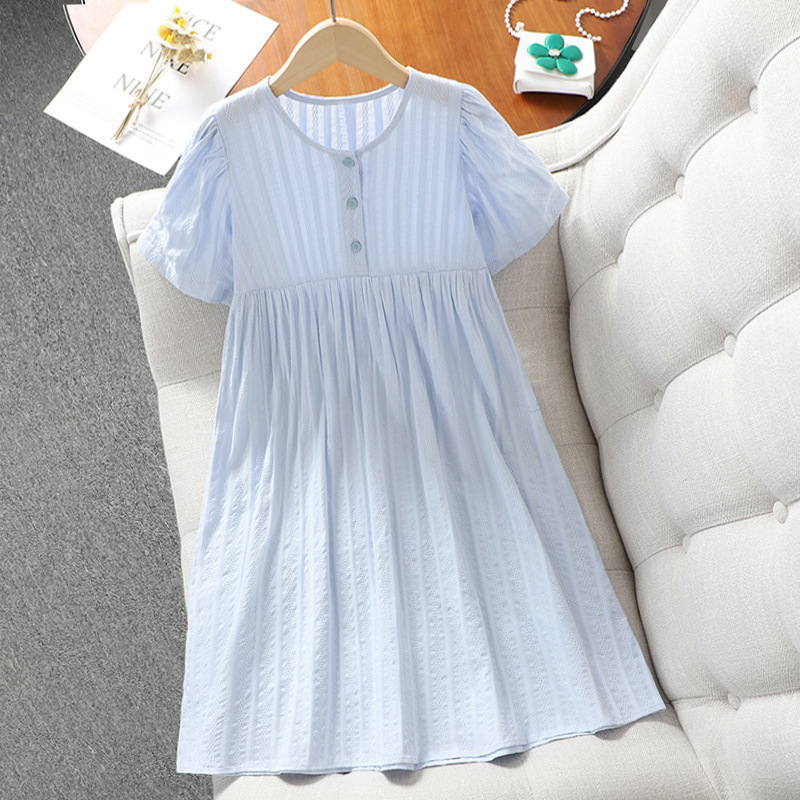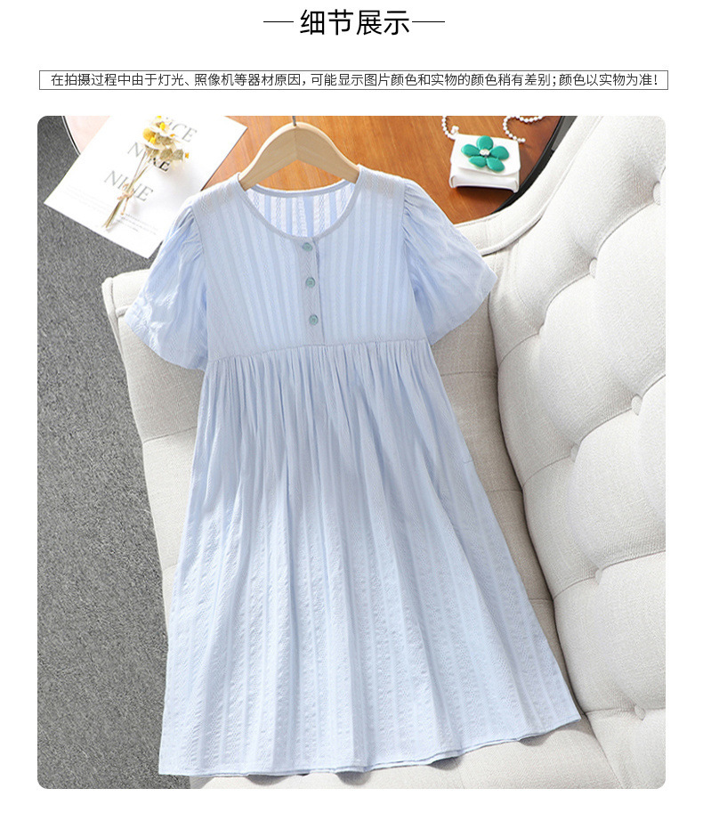 소녀 느슨한 원피스 여름 새로운 어린이 면 스커트 서양식 한국 유행 중대형 어린이 반팔 스커트