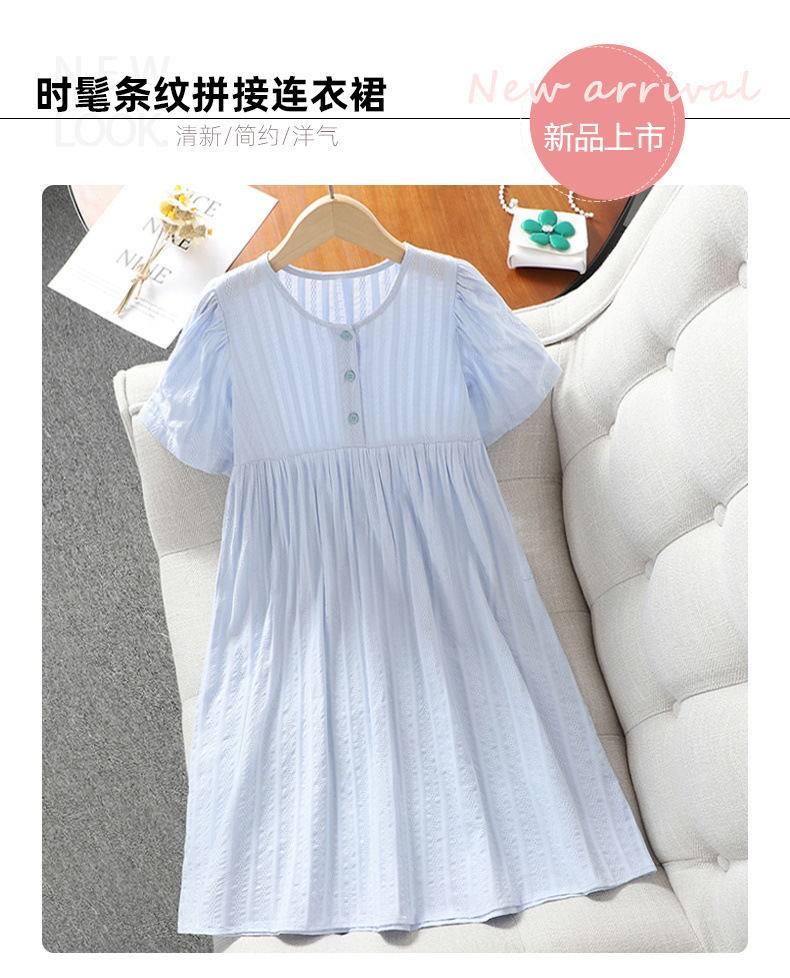 소녀 느슨한 원피스 여름 새로운 어린이 면 스커트 서양식 한국 유행 중대형 어린이 반팔 스커트스토어 가기