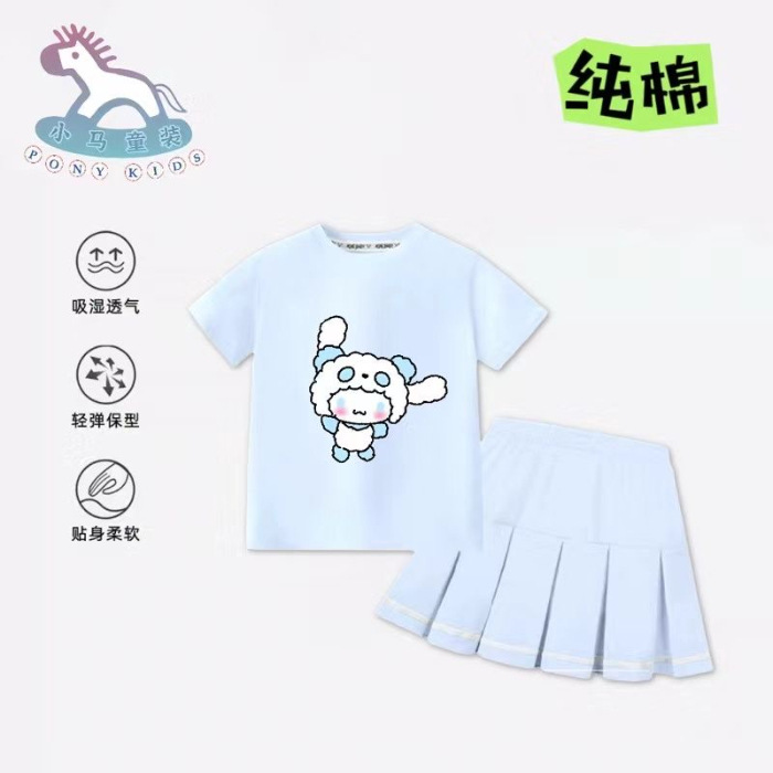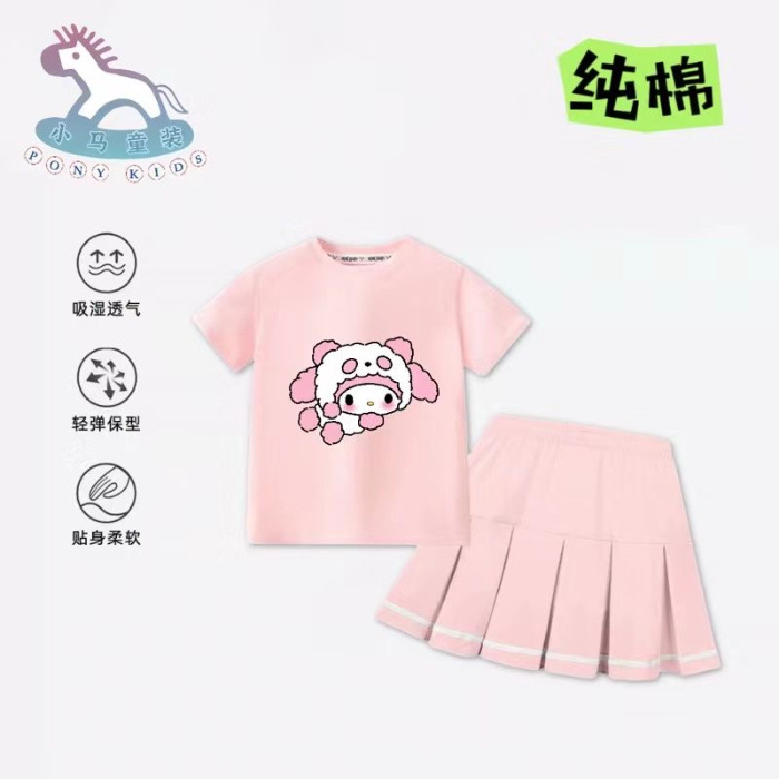 100 순면 어린이 쿨로 미 단색 주름 두 조각 스커트 만화 메를로 귀여운 계피 개 스커트