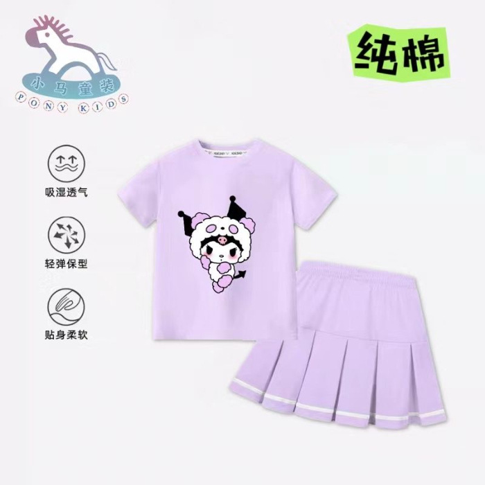 100 순면 어린이 쿨로 미 단색 주름 두 조각 스커트 만화 메를로 귀여운 계피 개 스커트스토어 가기