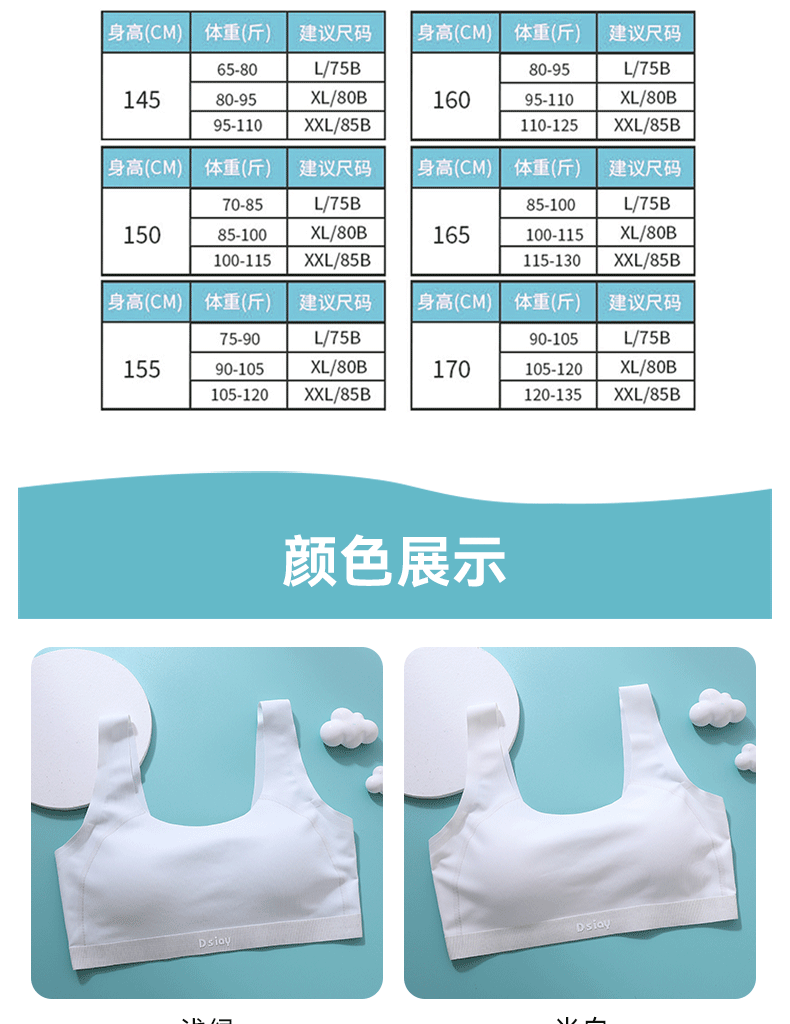 추적없는 소녀 스포츠 브라 중학교 발달 속옷 여성 큰 소녀 브라 사춘기 통기성 조끼스토어 가기